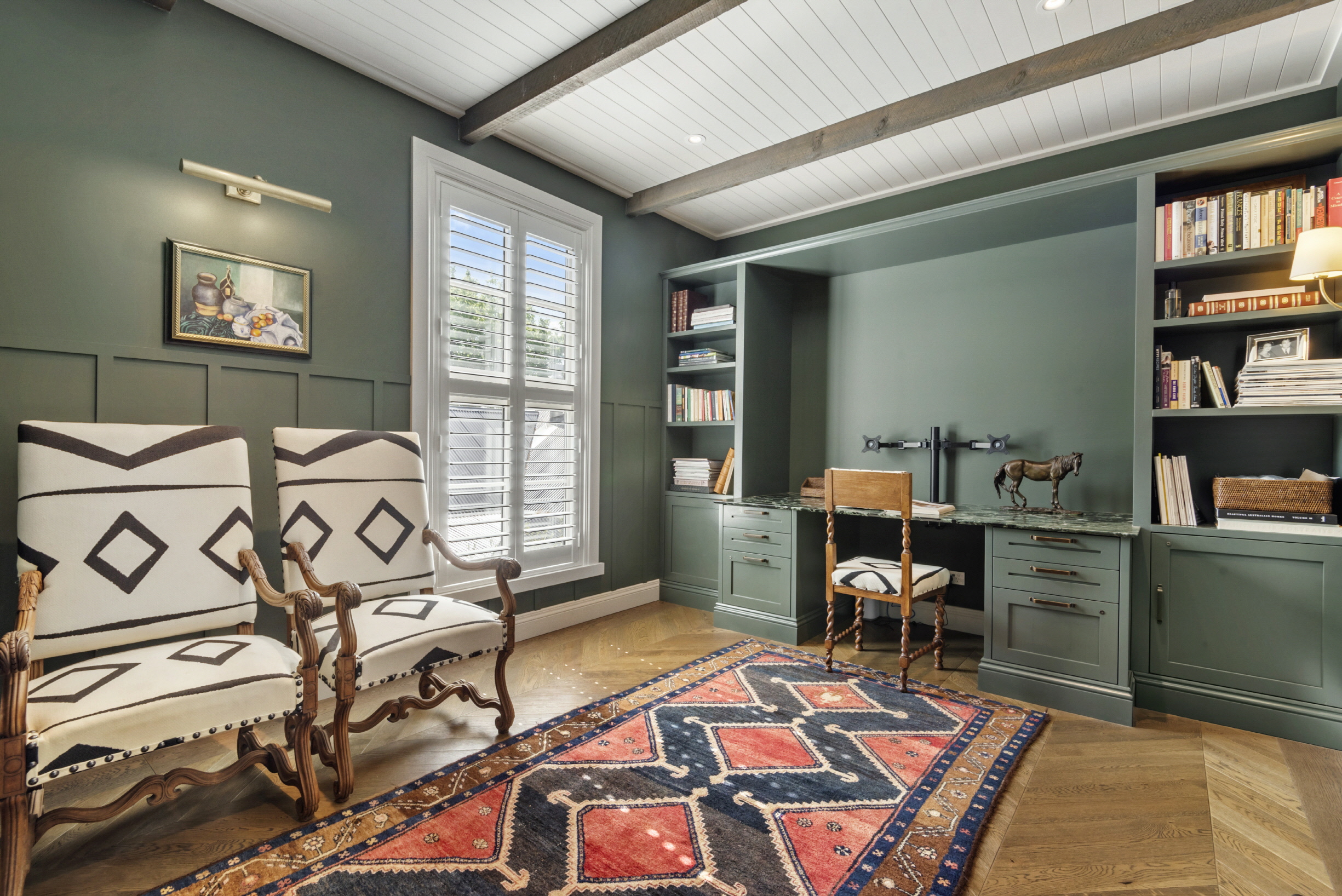 The main residence is generously proportioned, with five bedrooms, a dedicated study, and five bathrooms supporting family life at scale. A separate beautifully appointed guest house provides flexibility for extended family, or independent living arrangements. Meticulously remodelled with professional interior design, the home combines comfort and elegance throughout.