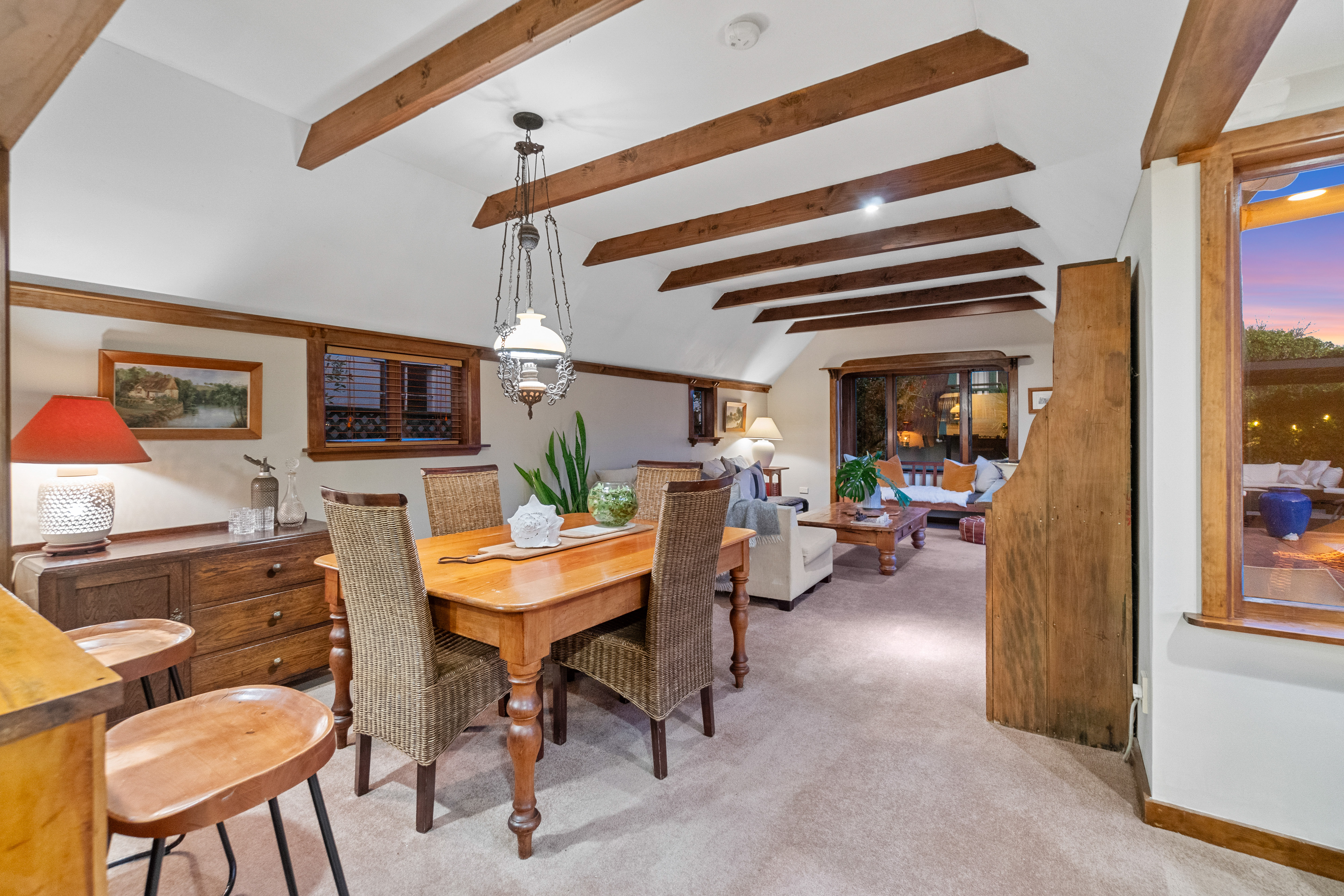 Framed by established trees and bathed in all-day sun, the property blends mid-century character with a thoughtful extension that remains true to its era. Sitting proudly on a generous flat 835sqm site, the layout prioritises comfort, connection, and versatility. With five bedrooms, two bathrooms, and multiple flexible living zones, everyone has space to relax while still coming together with ease.