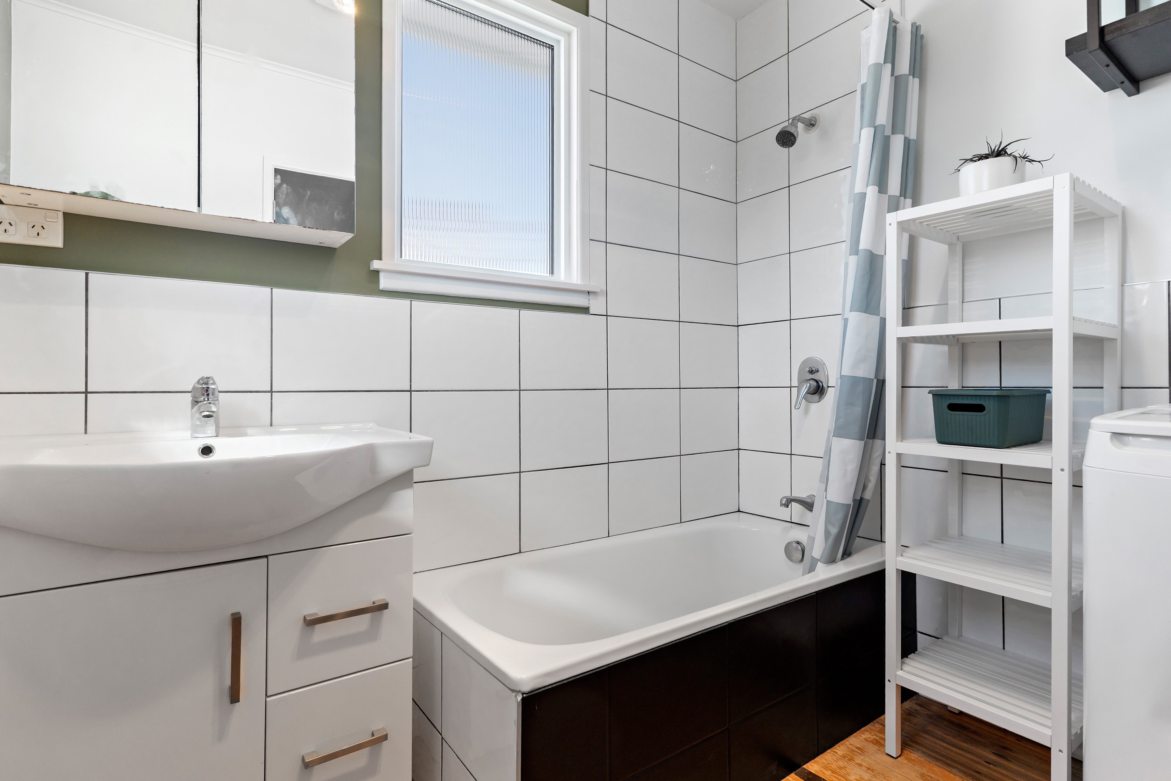 The spacious open-plan living area flows seamlessly to an expansive covered deck - a superb space for year-round entertaining or relaxing while overlooking the private garden. The modern kitchen is well appointed and features a breakfast bar, perfect for casual dining or hosting friends. The generous master bedroom offers ample wardrobing, while the second smaller room works perfectly as a guest room, nursery or work-from-home office. A modern bathroom with bathtub completes the interior. Additional features include off-street parking and a highly convenient location.