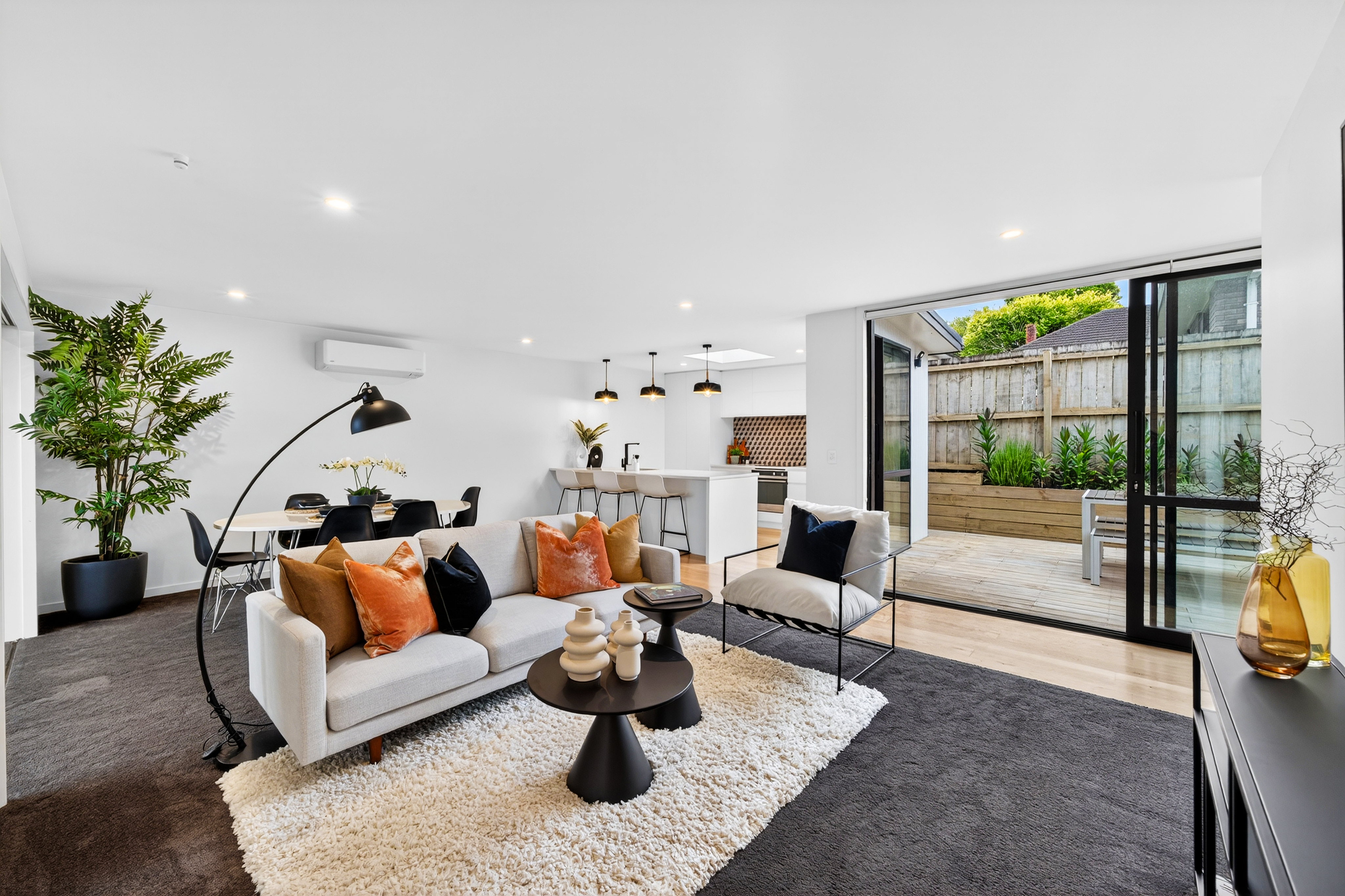 This contemporary three-bedroom home combines privacy, style, and versatile living in a prized Glen Innes location bordering St Heliers. Designed for modern family life, it features two living areas that flow effortlessly to outdoor spaces, perfect for entertaining or relaxed everyday living.