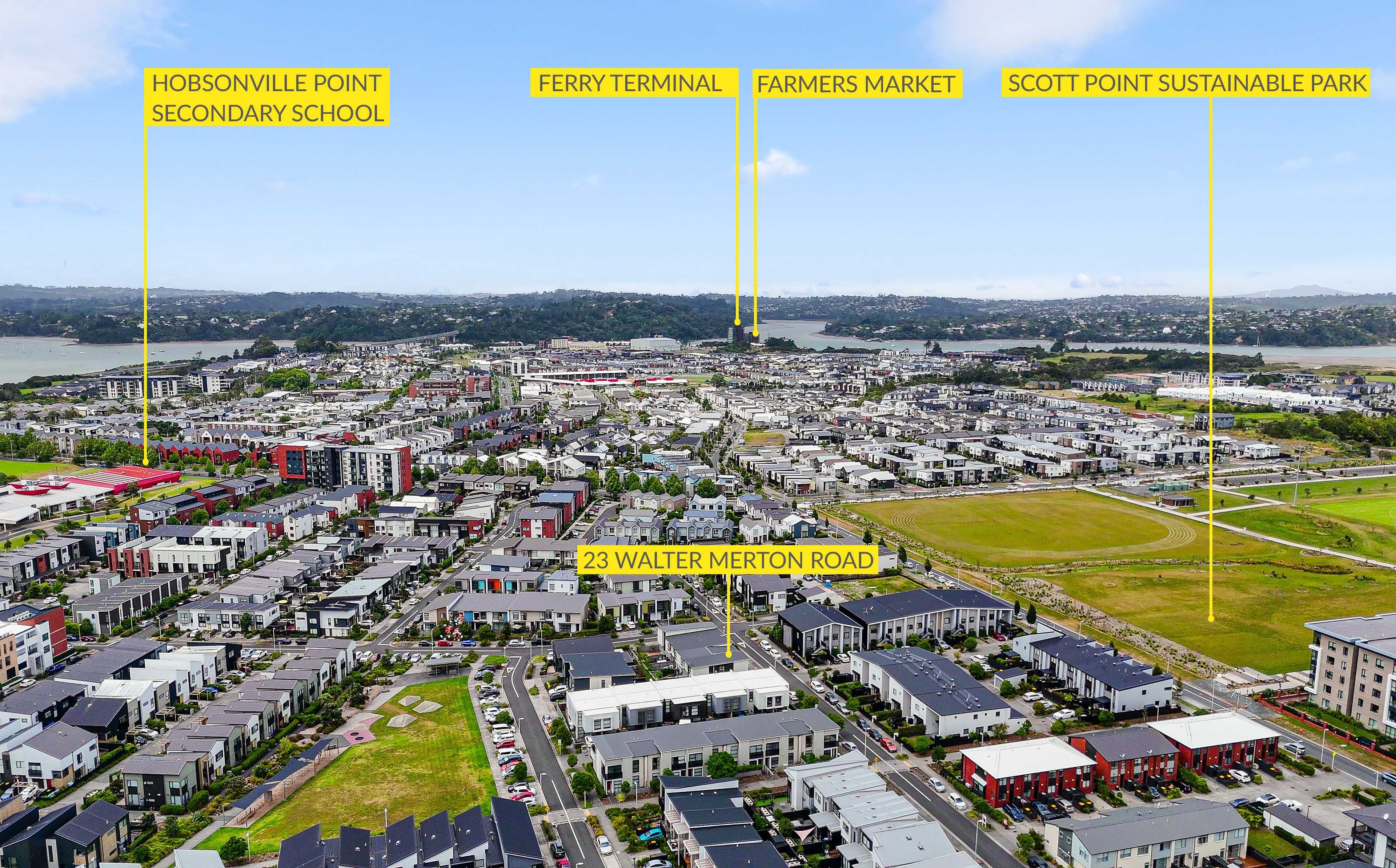 • Walter Merton Road places you firmly in the rhythm of Hobsonville Point living. Schools are close and easy, parks and coastal walks are part of the weekly routine, and Catalina Bay's restaurants, ferry and waterfront energy are all comfortably within reach. It's a neighbourhood designed for families who want connection without compromise.