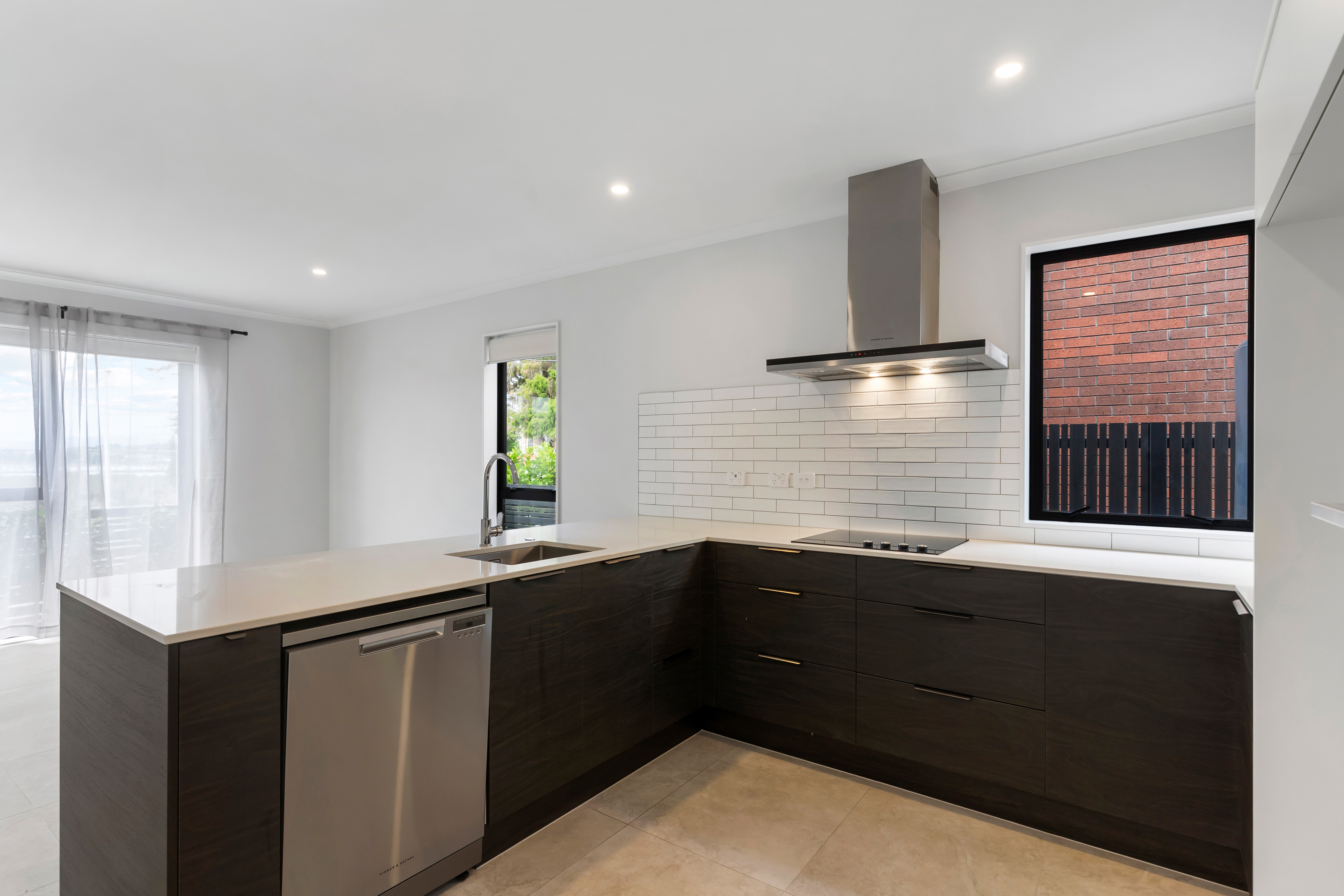 The ground floor features a sleek, open-plan kitchen and dining area complete with high-quality Fisher & Paykel appliances - perfect for entertaining or everyday family life. A separate lounge offers a cosy retreat with seamless indoor-outdoor flow to a private patio, ideal for summer evenings and alfresco dining. A guest toilet, laundry area, and generous storage complete the lower level.