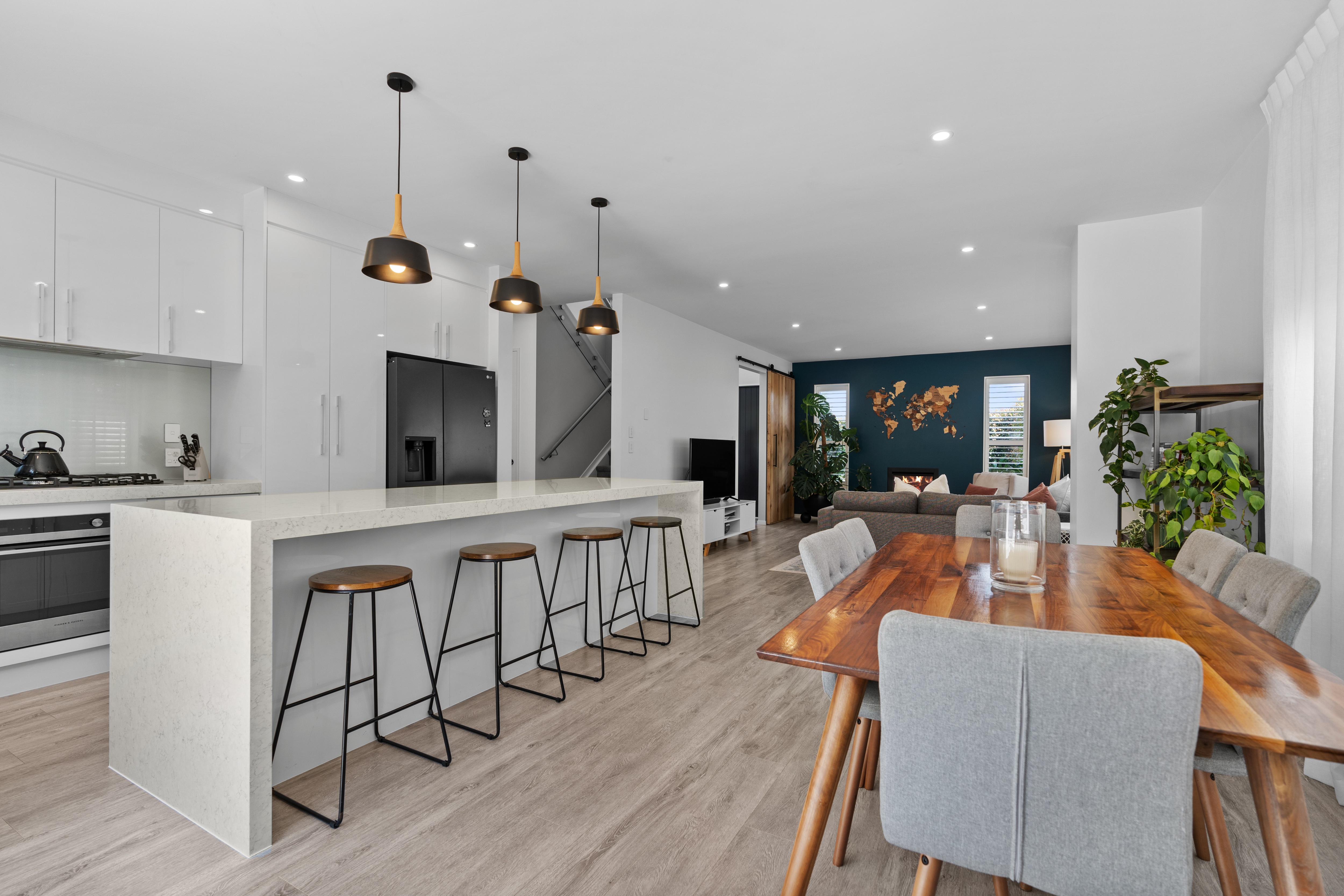 The kitchen sits confidently at the centre of the action, anchoring open-plan living and dining where everyday life flows effortlessly. Whether it's busy school mornings, relaxed Sunday brunch, or entertaining friends, this space delivers. Two additional living areas, one upstairs and one down, mean there's always room for kids, guests, or a quiet escape when needed.