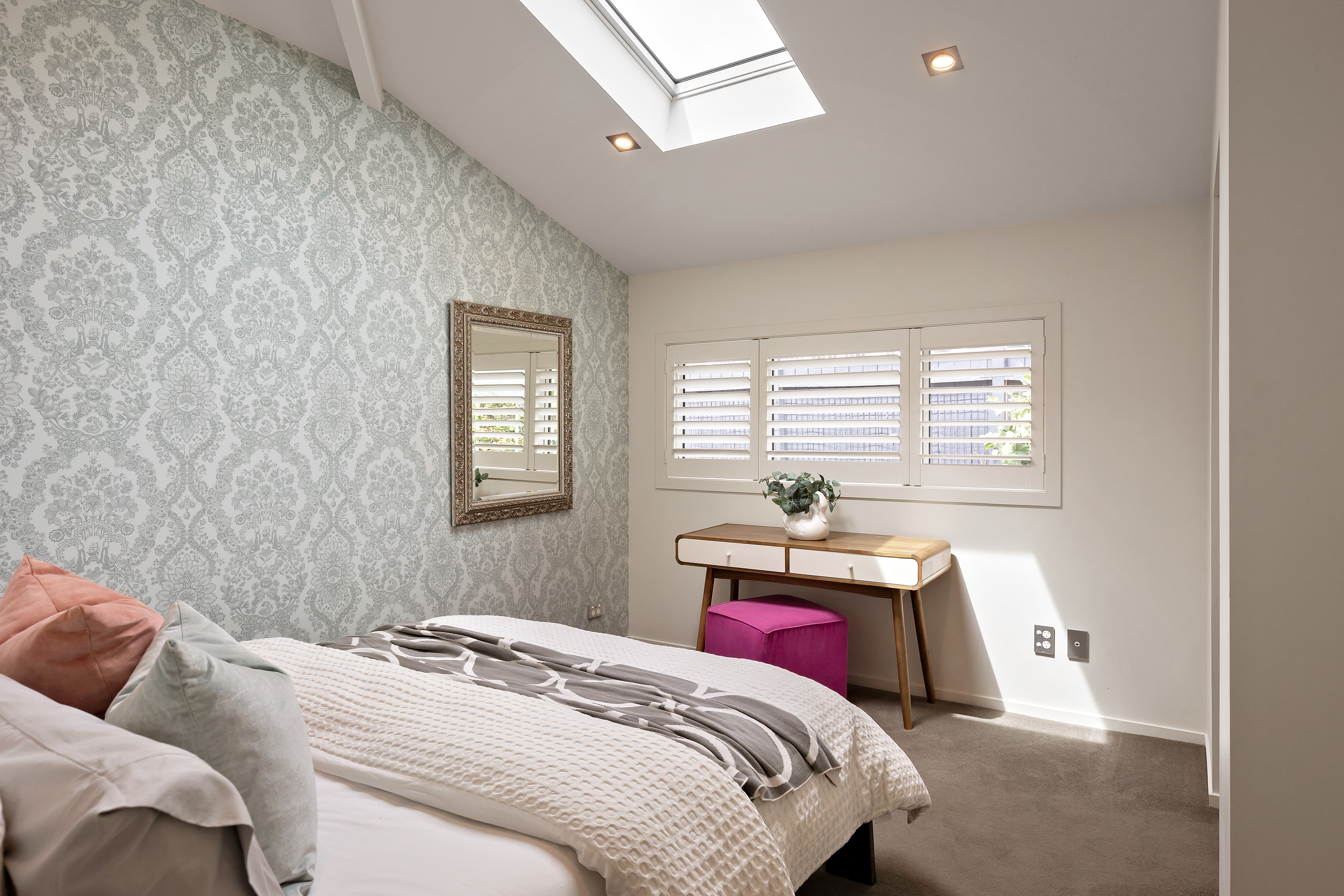 A major renovation completed with approved Auckland Council consent reconfigured the interior layout, enhancing natural light, circulation and functionality while preserving the integrity of the original home. Skylights and carefully planned living zones introduce warmth and flexibility, allowing both shared family moments and quiet retreat.