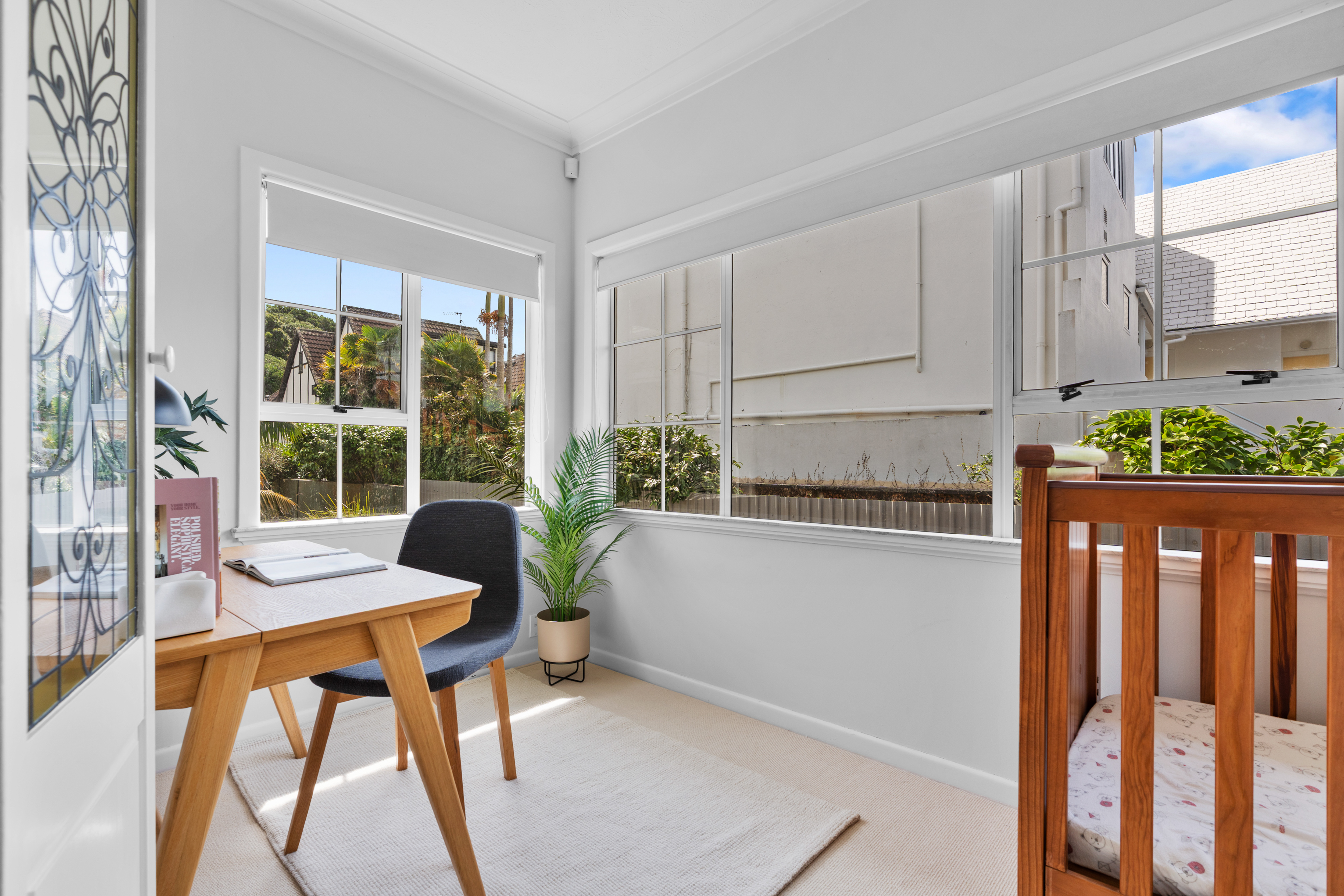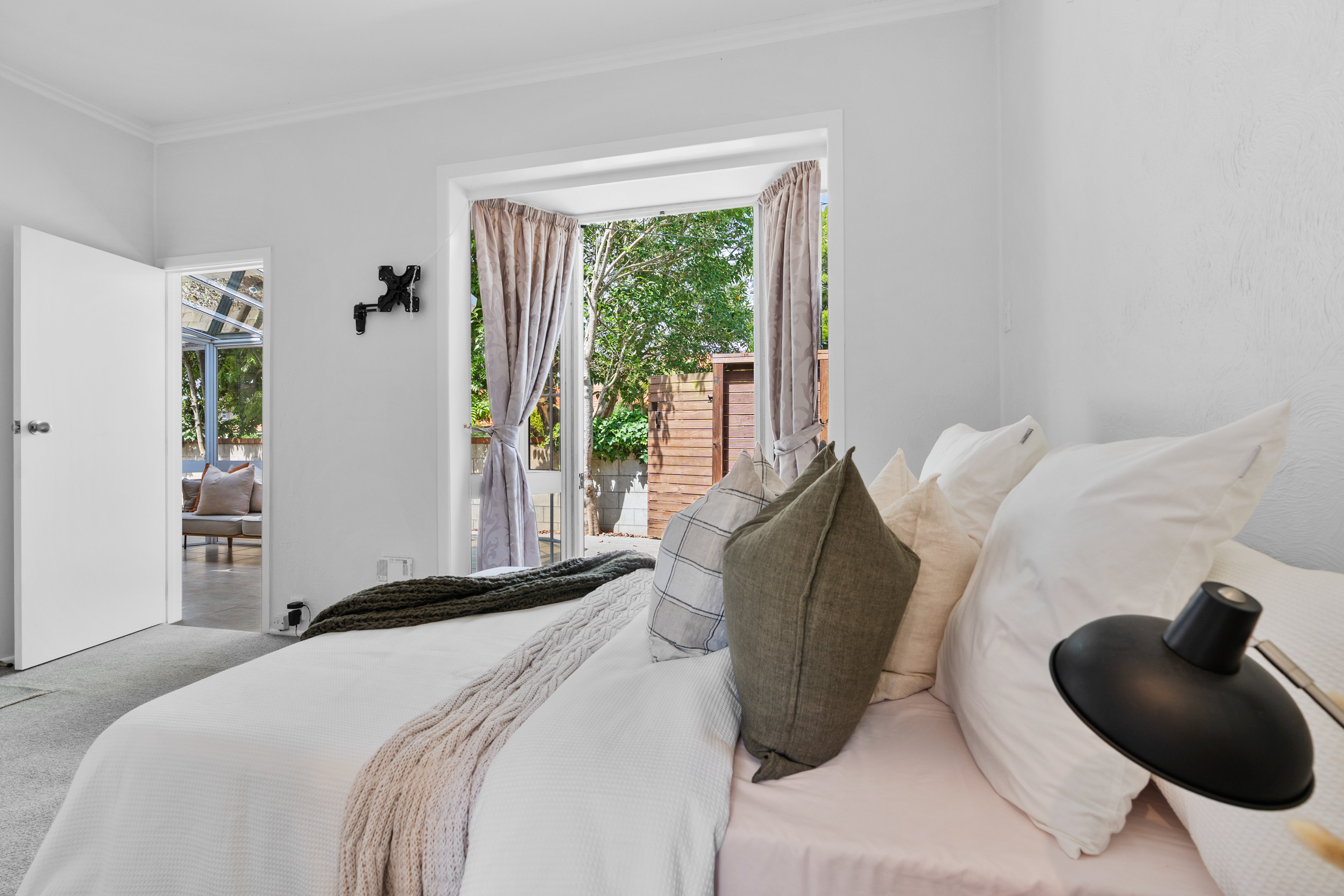 Set over two levels, the lower floor features a well-maintained kitchen and open plan lounge/dining area that opens seamlessly to a covered conservatory and deck - ideal for entertaining and relaxed summer living. Two bedrooms are located on this level, including a generous double bedroom with its own study or nursery, plus a separate bedroom and toilet with its own entrance, making it perfect for guests, extended family, or flatmate flexibility.