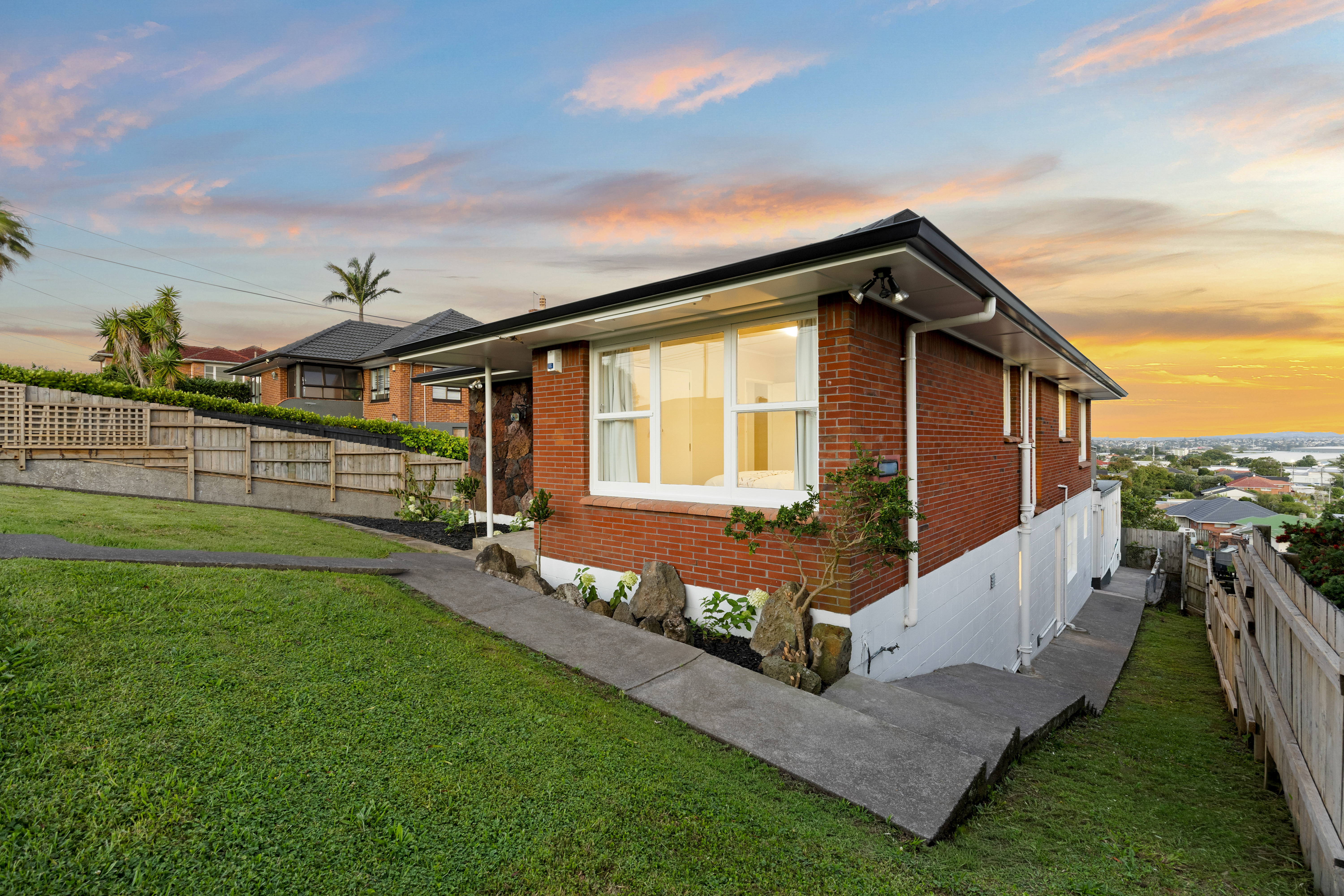 KEY FEATURES • Spacious 6 bedroom home with seperate 1 bedroom studio unit with kitchen & bathroom • Main house comprises off 6 bedrooms, 2 bathrooms and 2 living areas. • Brick and concrete block construction • Healthy Homes compliant • Polished timber floors and new carpet throughout • Metal tile roof completed in 2020 with wide eaves • Elevated ridgetop position • Panoramic views from living room across East Auckland, exceptional at night • Rectangular 716sqm freehold fee simple section • East to west orientation providing excellent natural light • Ample off-street parking for multiple vehicles