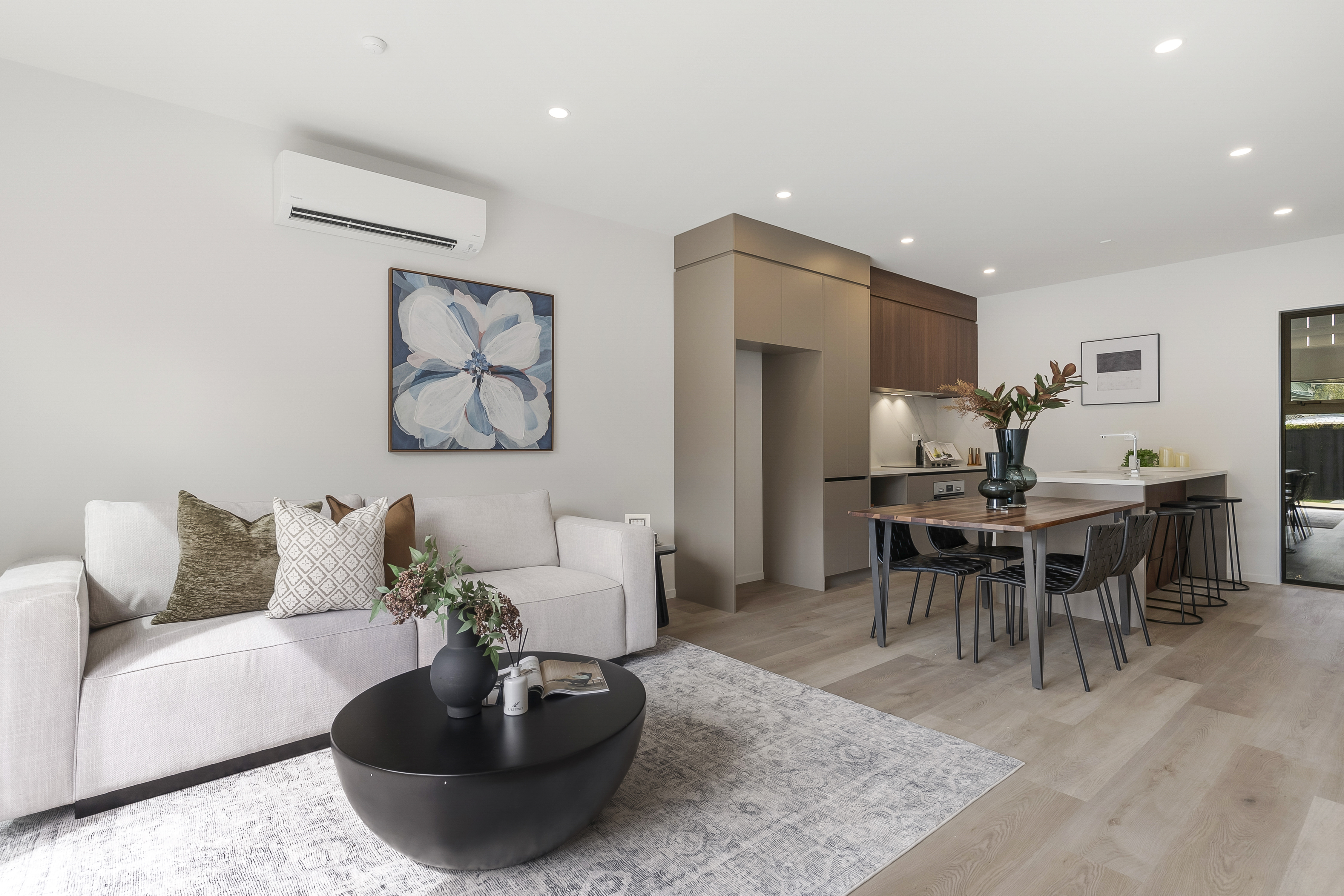 • Underfloor heating in the generous size bathrooms and heat pumps in the living area and master bedroom