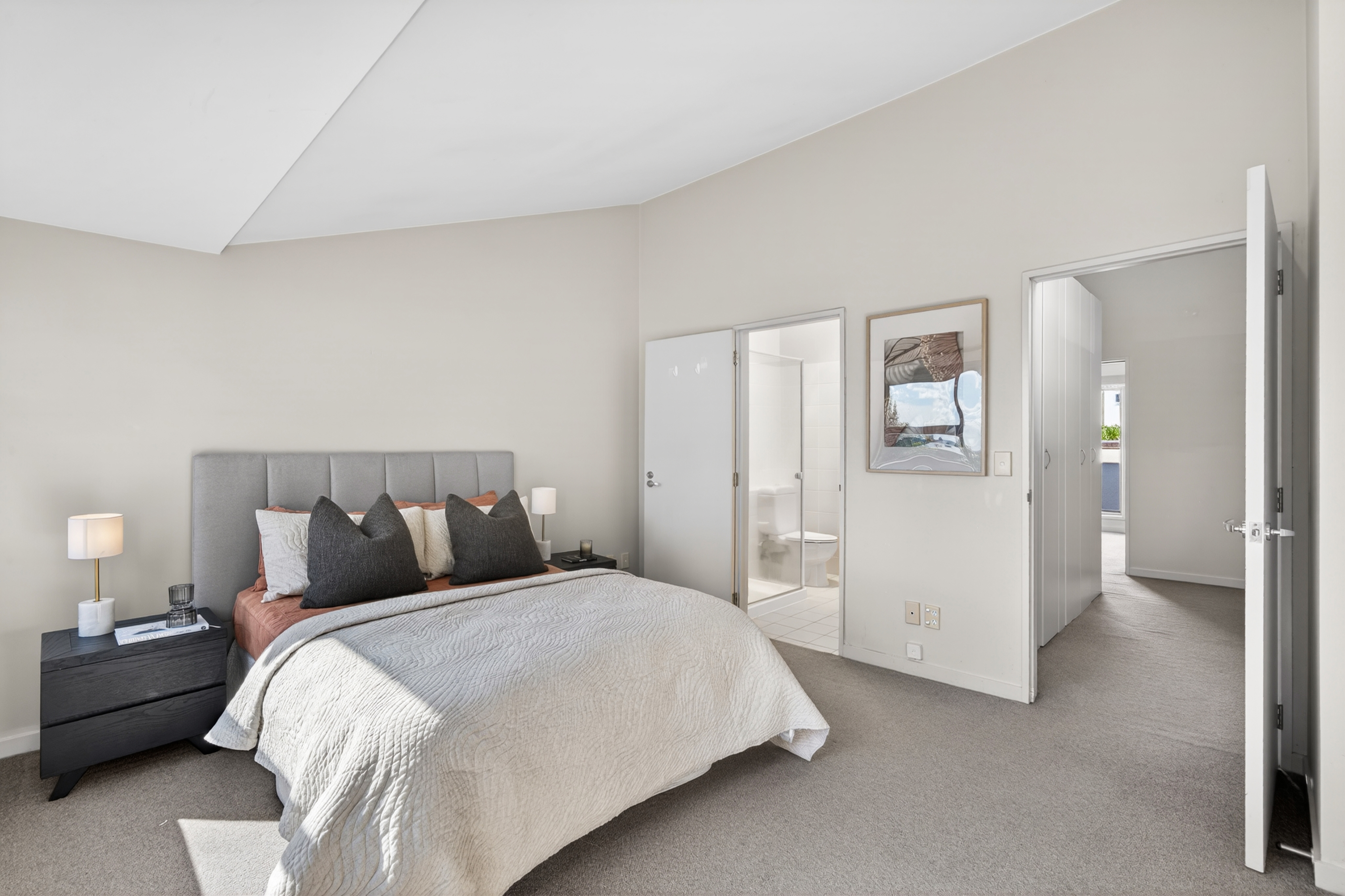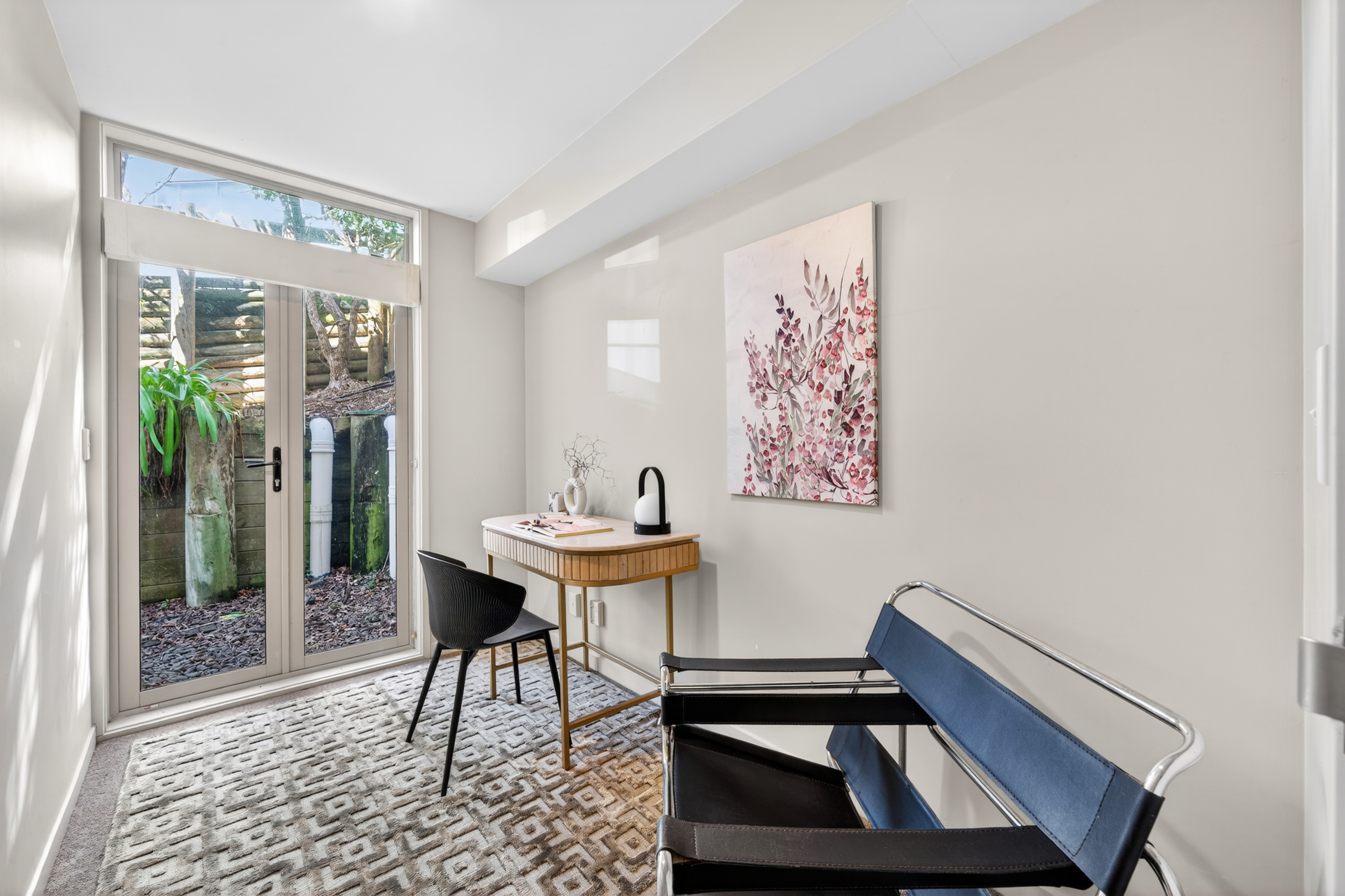 Set across three levels, the layout is highly functional for modern living. The main level features open plan living, dining and kitchen, complemented by a versatile second living or study space, along with a north-facing balcony that flows directly from the living area. High ceilings enhance the sense of light and openness throughout.