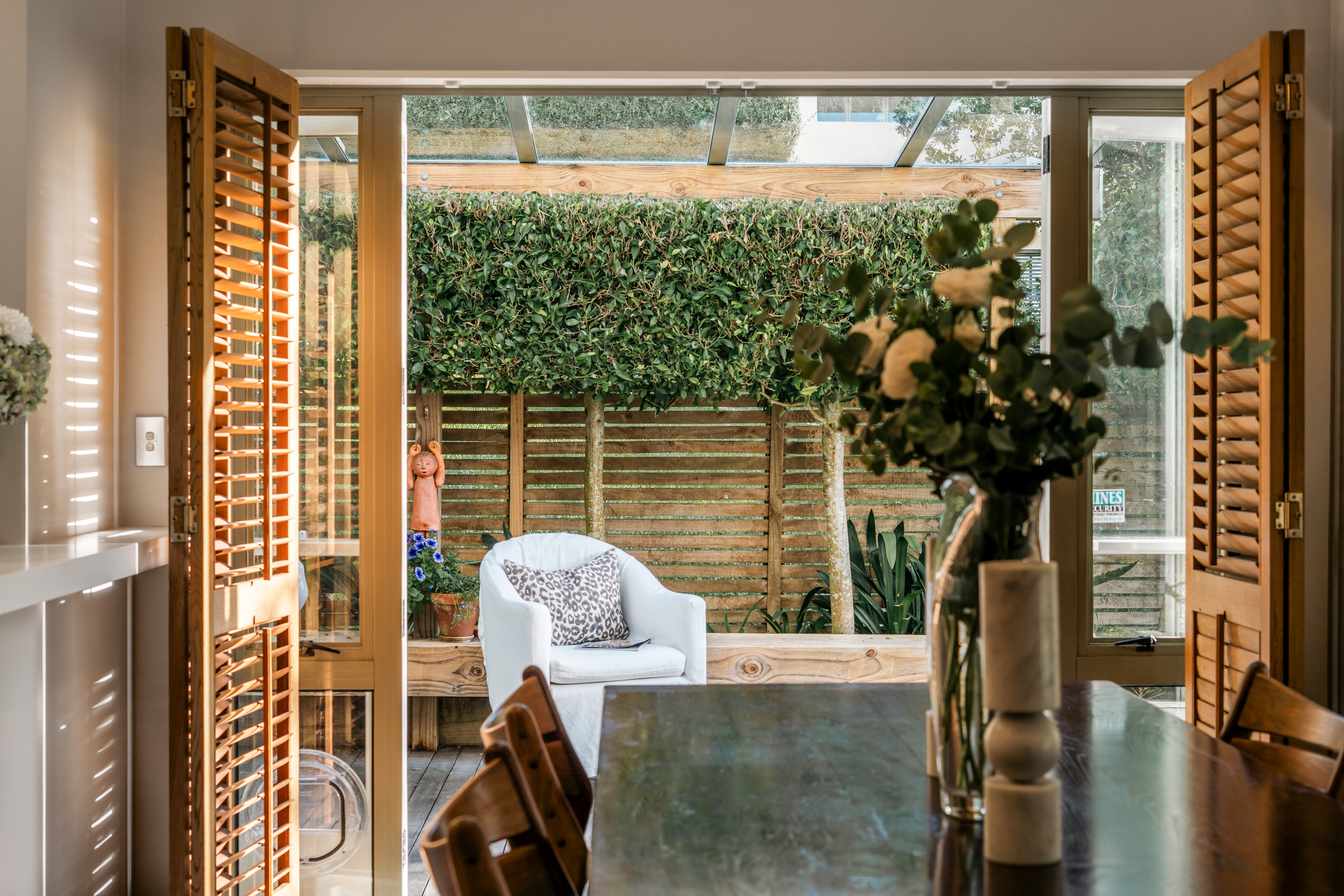 What unfolds beyond the welcoming entrance is a series of calm, considered spaces where proportion, light, and the gorgeous outdoor surrounds envelope you and assure you that you truly have arrived home