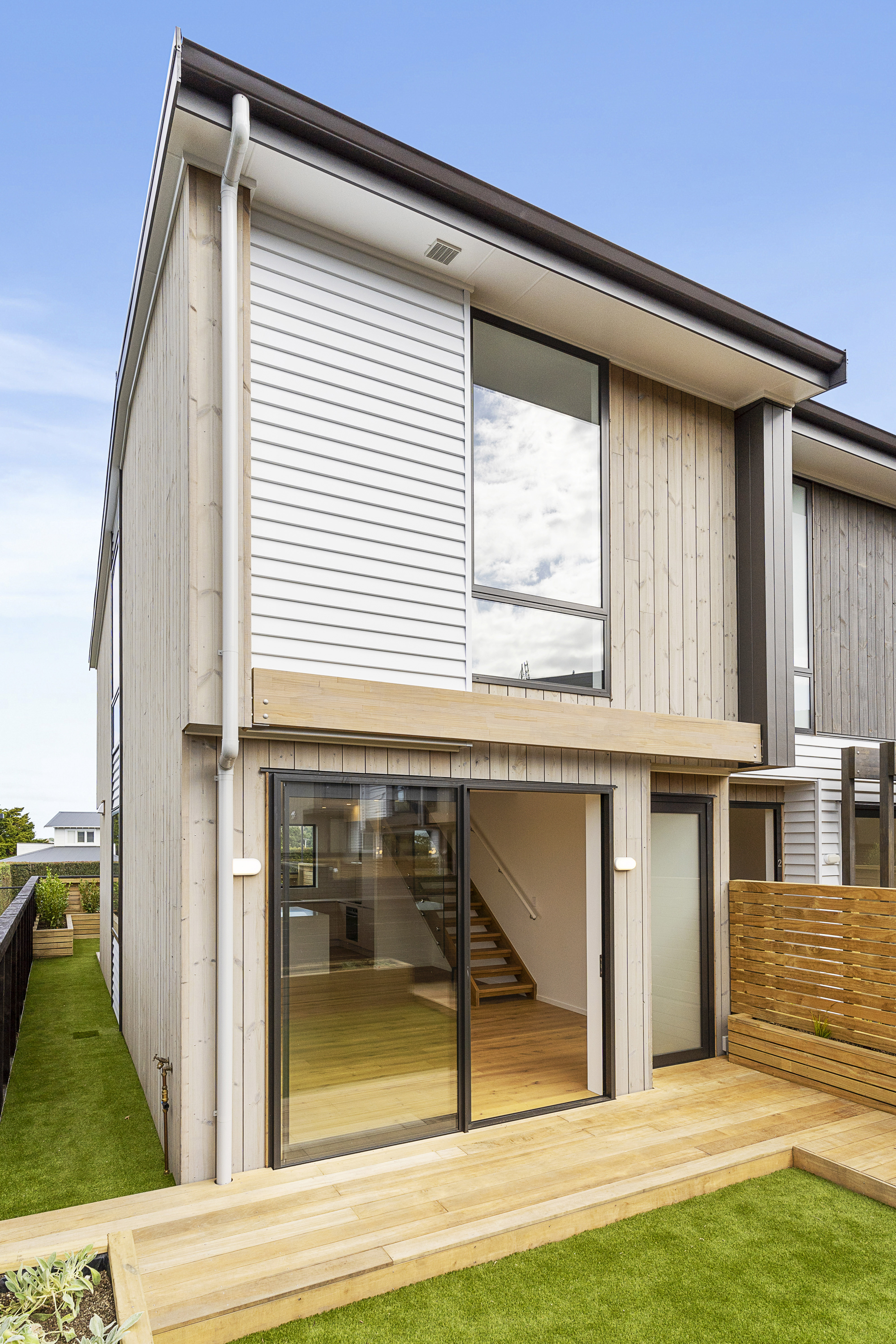 Superbly positioned for all day sun this two level townhouse features spacious open plan living on the ground floor opening to a private garden area at both the front and rear. Modern brand new kitchen with high spec appliances & island bench space. Accommodation is all upstairs - Three well proportioned bedrooms, the master featuring an ensuite and walk in robe. The unit features double glazing and a heat pump for all season comfort. There is 1 off-street car park and street parking on surrounding streets.