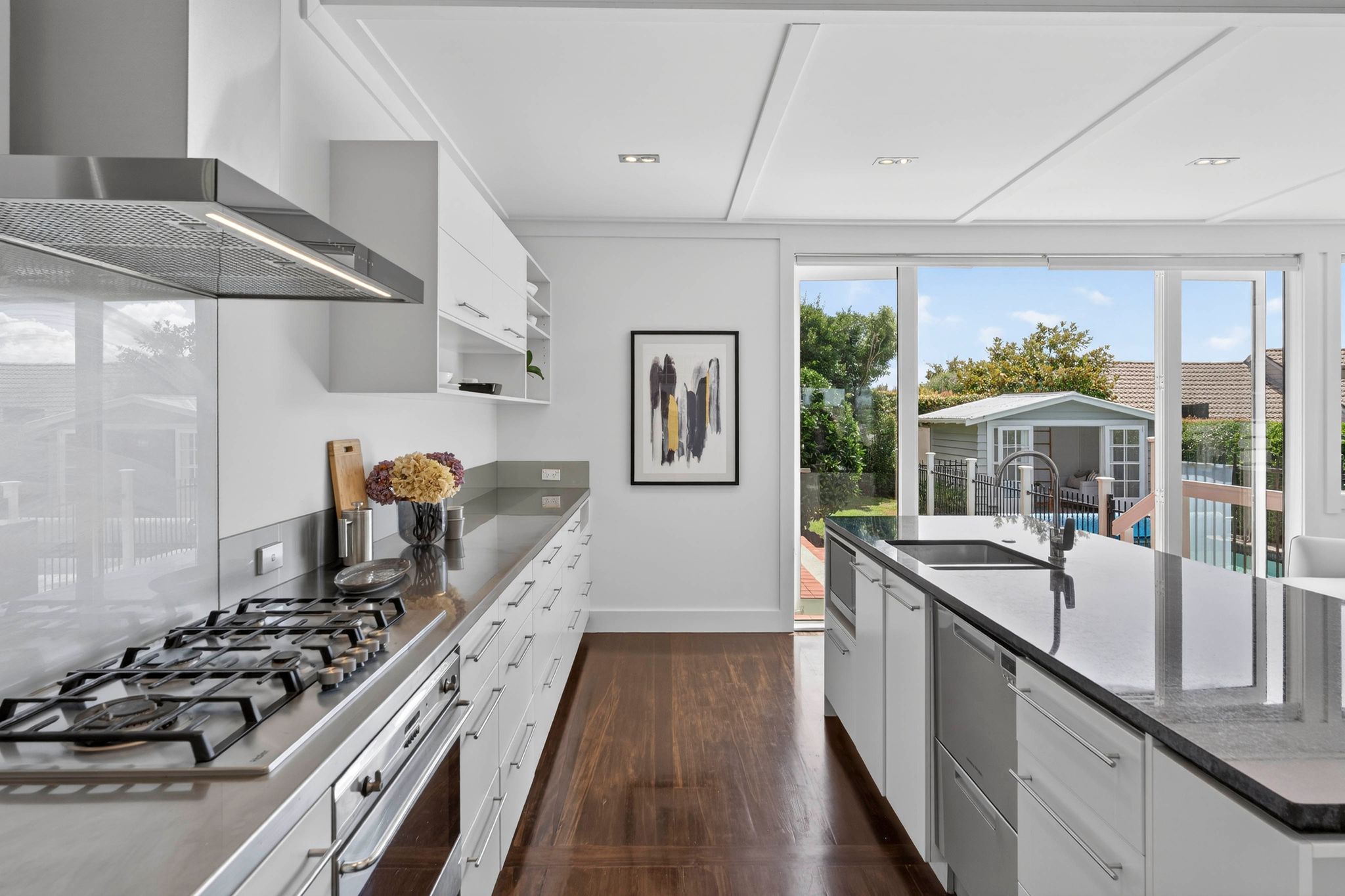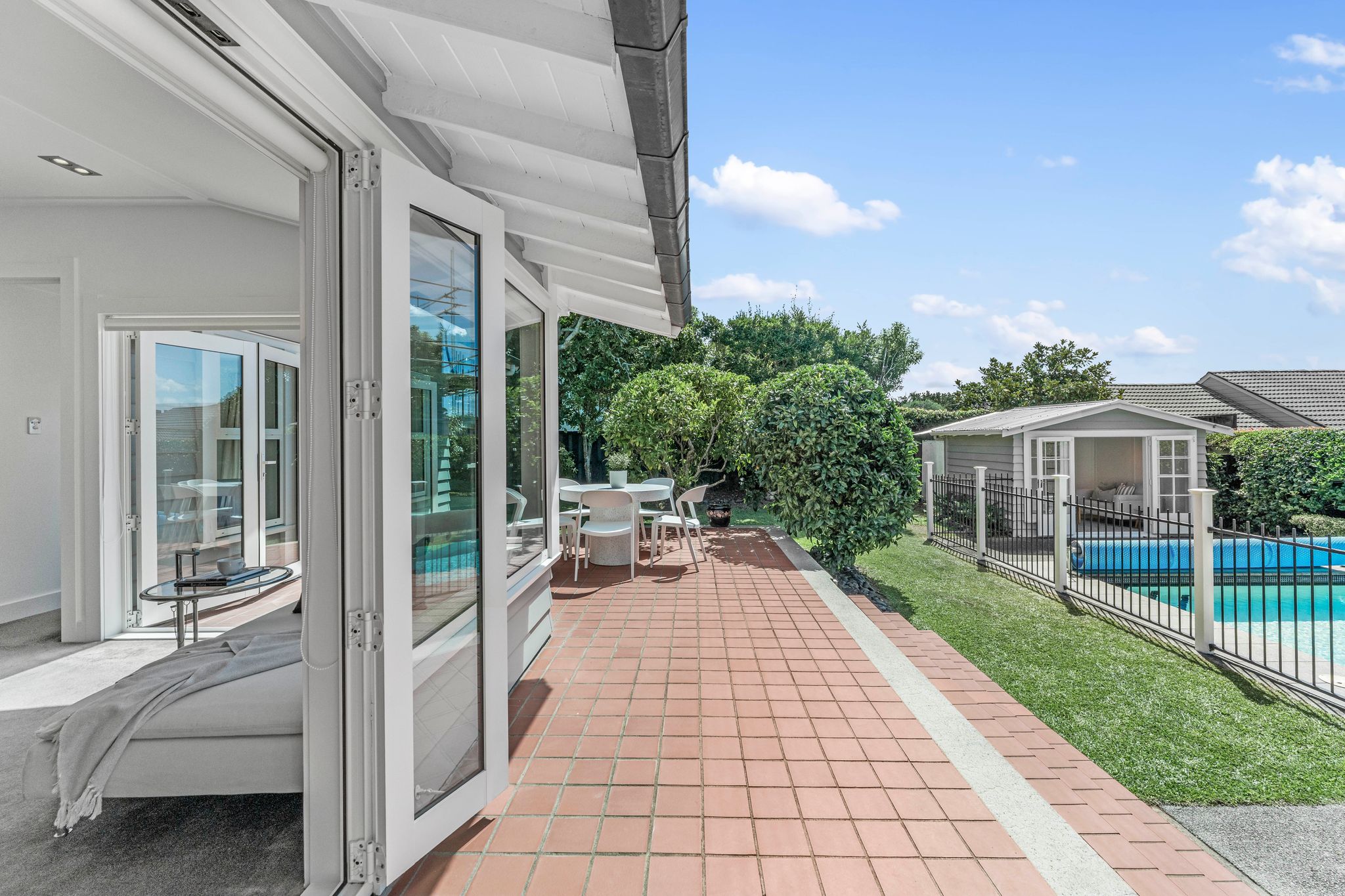 At the heart of the home, the separate formal lounge flows seamlessly into a vast open plan kitchen and dining area. This light filled hub acts as the perfect backdrop for morning coffees or evening entertaining, transitioning effortlessly to a sun-drenched backyard. Outside, the sparkling swimming pool invites summer fun, complemented by a versatile pool house. Whether you envision a vibrant kids' hangout, a quiet home office, or a personal gym for a post workout plunge, this extra space adapts to your lifestyle needs.