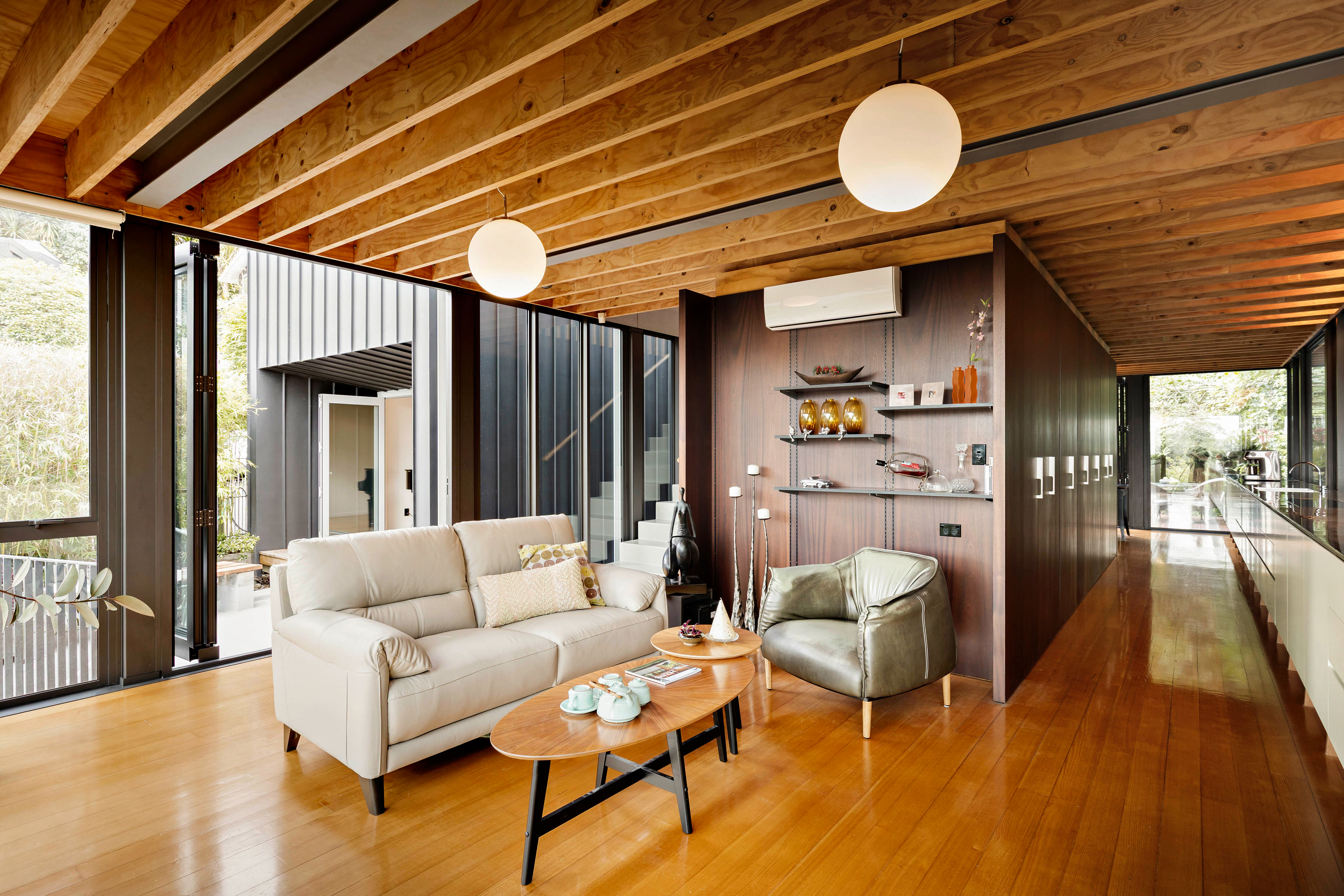 The main living level is generous and fluid. A long stainless-steel bench forms the centre of the kitchen and entertaining area. Multiple living zones allow the house to shift easily between everyday living and larger gatherings - the flexi-room ground level is a superb area for teenagers or as a media room. Upstairs, sliding panels allow spaces to open or close as required - a versatile approach to living influenced by Japanese architecture and rarely seen in contemporary housing. There is scope to return to 3 bedrooms, or retain as 2 large luxurious bedrooms with ensuites.