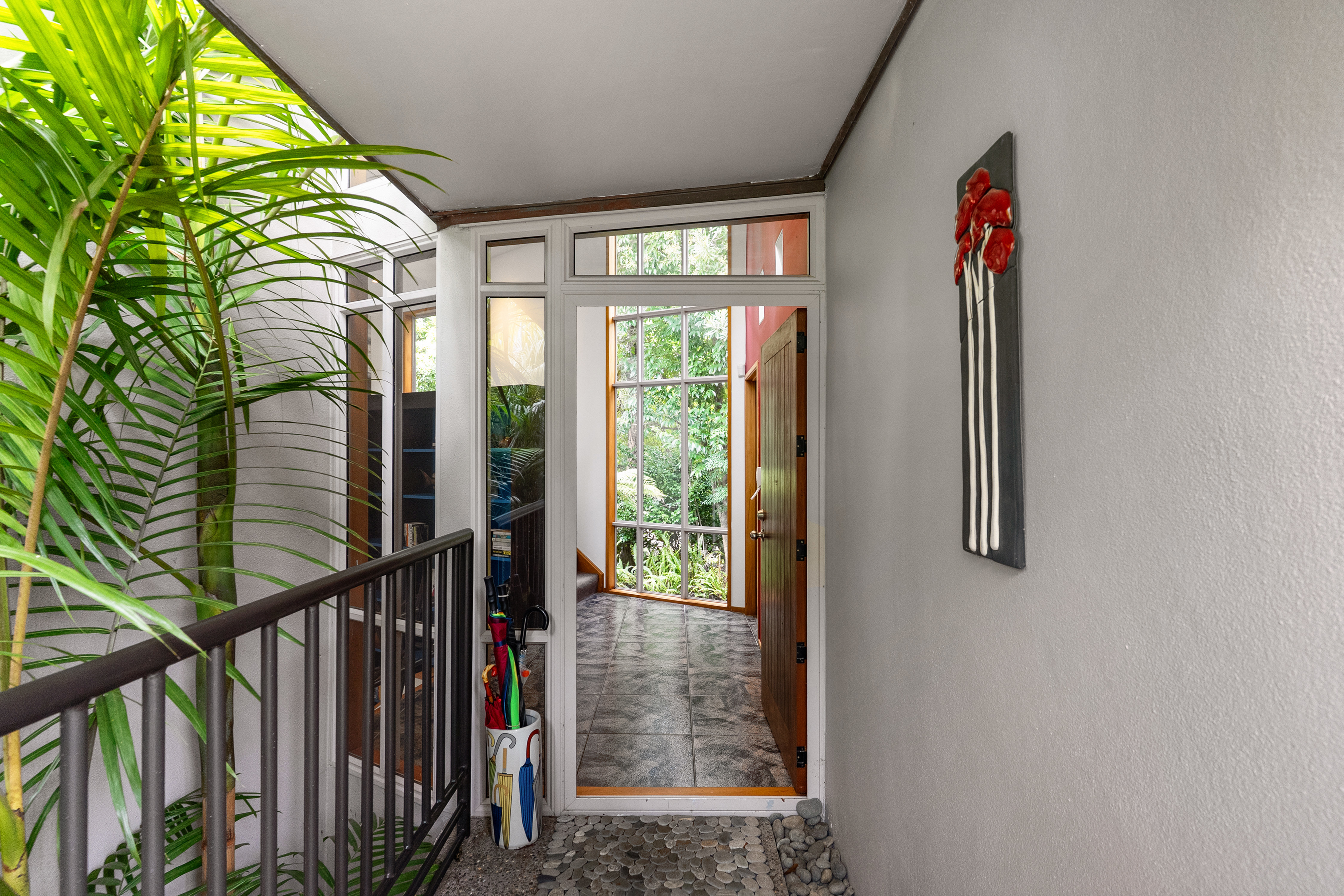 Enjoying a full 824sqm land holding, this four bedroom, two and a half bathroom home is split over two levels. This home offers a surprise through every door, with subtle angles and sweeping curves. Floor-to-ceiling windows and glass doors allow the tropical exterior to breeze into every bedroom and living space, and the design of the house provides ample wall space and shelving as the perfect platform for your art collection.