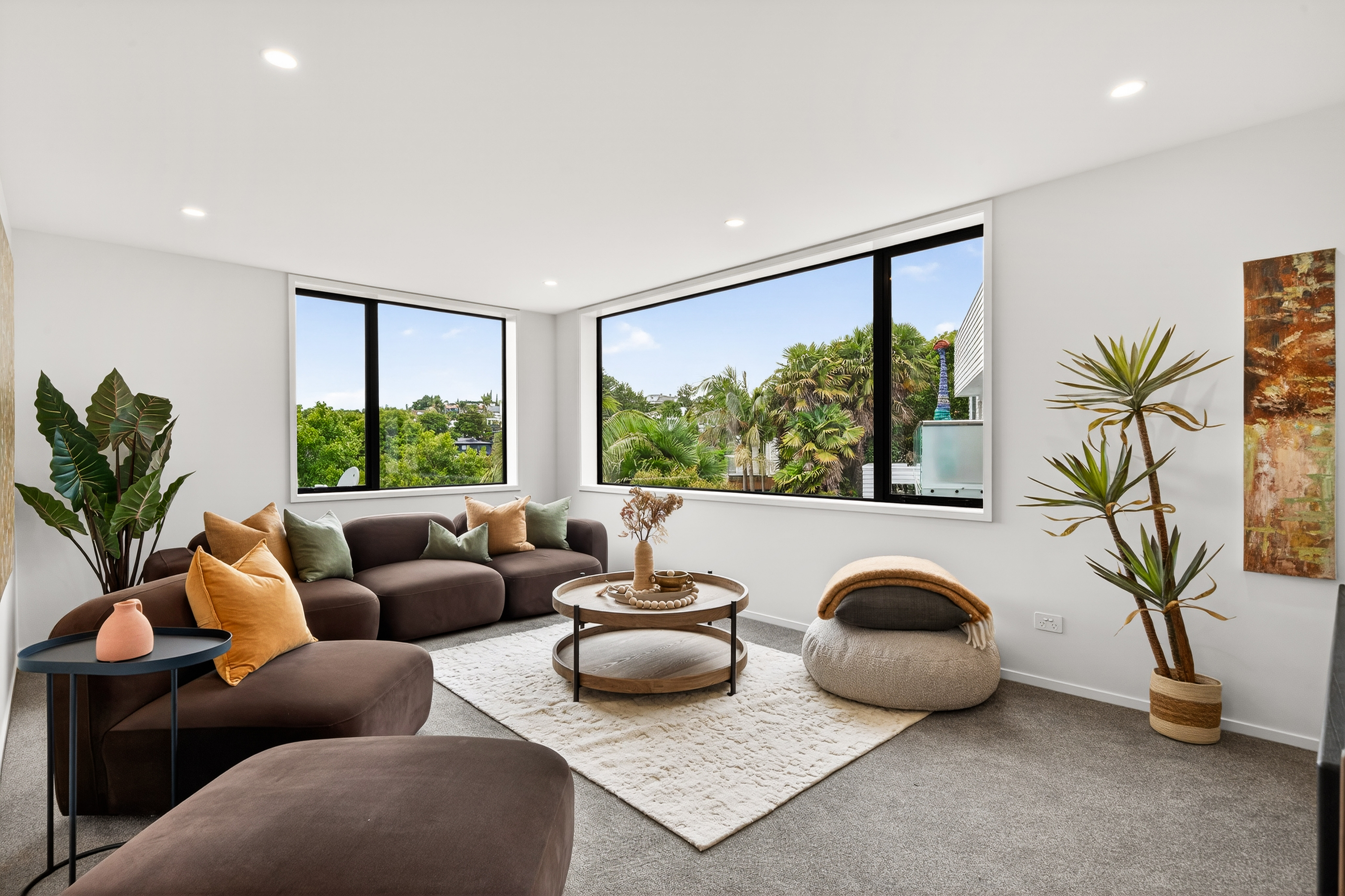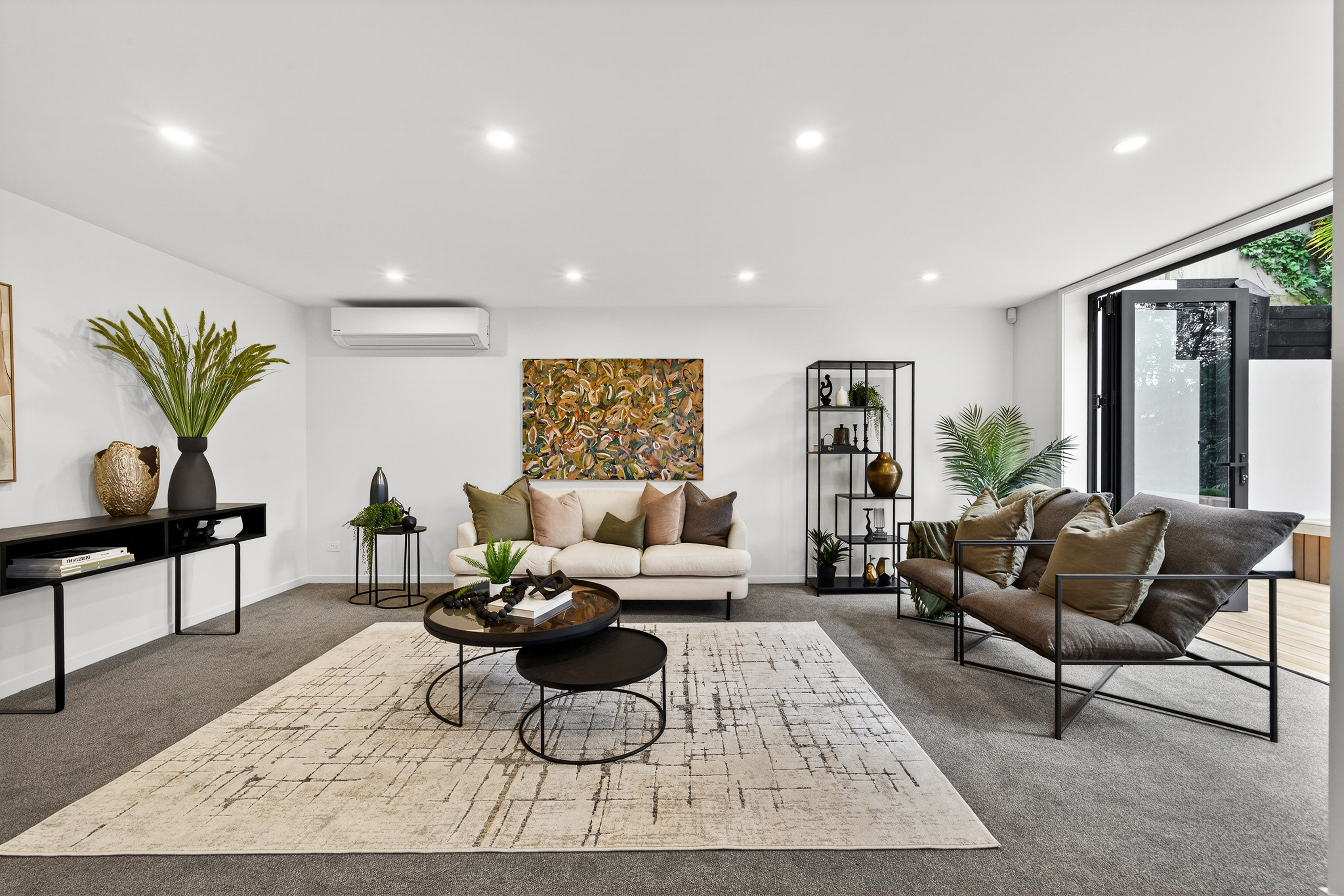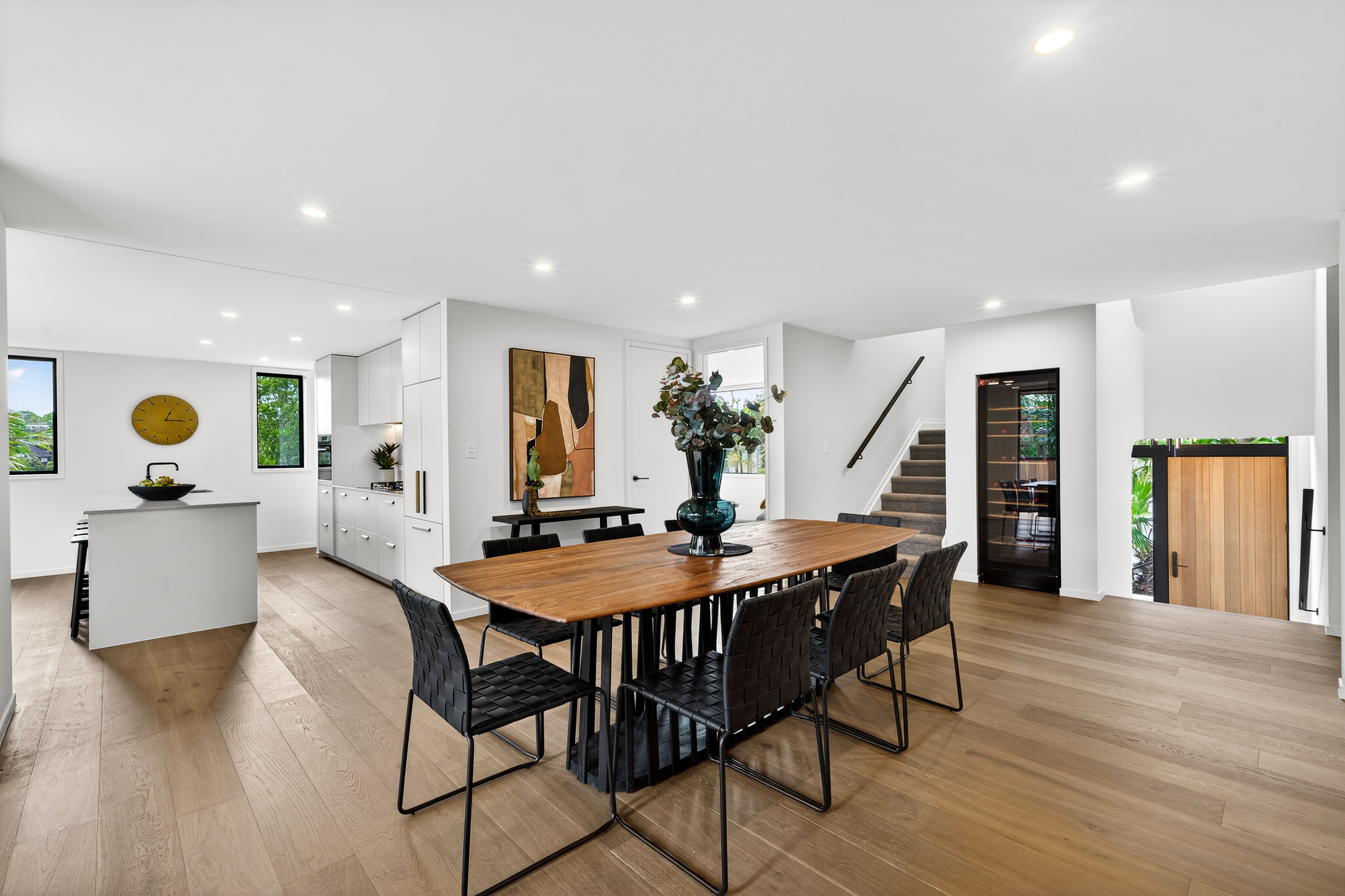 Living and entertaining unfold across multiple zones, anchored by a generous open-plan heart that connects seamlessly to a sun-washed deck framed by greenery. It's a setting designed for long lunches, relaxed evenings, and the kind of everyday living that feels both easy and elevated.
