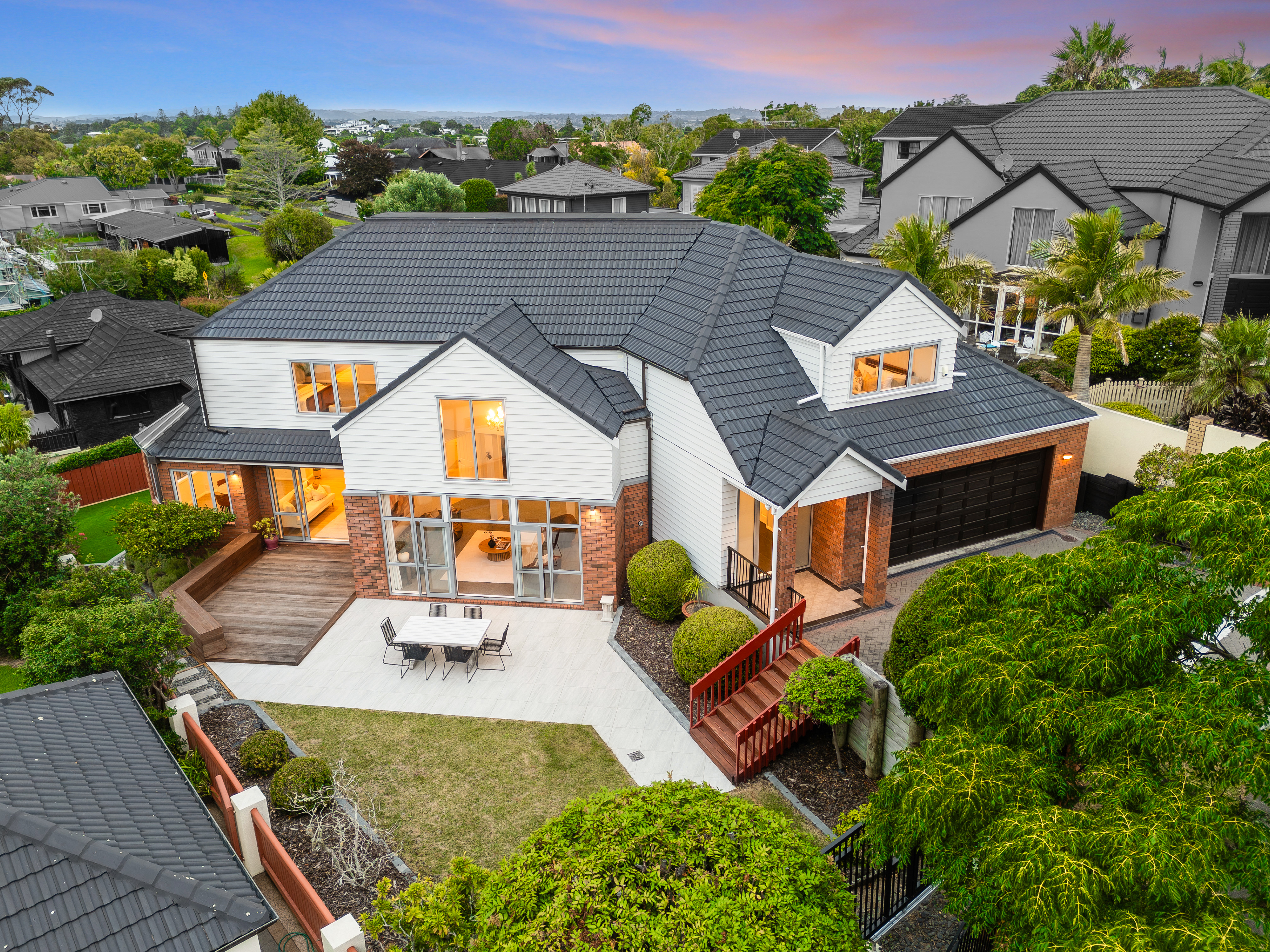 • Five bedrooms deliver adaptability, including a ground-floor bedroom that works perfectly for guests, extended family, or explore options for fully independent accommodation. The primary suite is more than generous - it's elevated and private with an outlook that stretches to the Coromandel and across the eastern bays, with a welcome glimpse of sea.