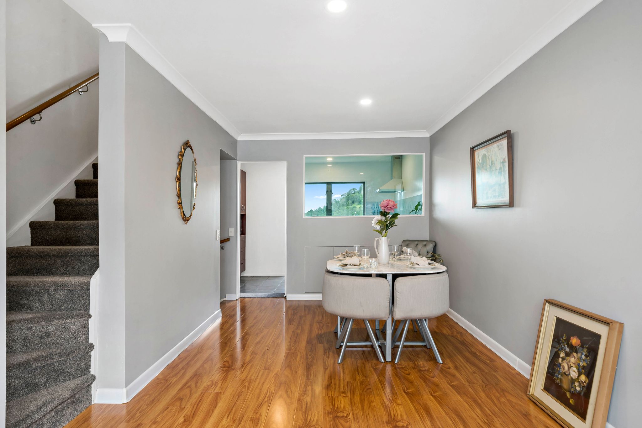 Set back from the road, the property benefits from elevation providing plenty of natural light. The three level configuration offers a flexible layout, with a generous garage, laundry and WC on the ground floor. Open plan living and dining with balcony on the middle, and two double bedrooms and a bathroom on the upper floor. A brand new roof and sunlight have just been renovated to ensure years of low maintenance living ahead along with a recently refurbished bathroom and kitchen.