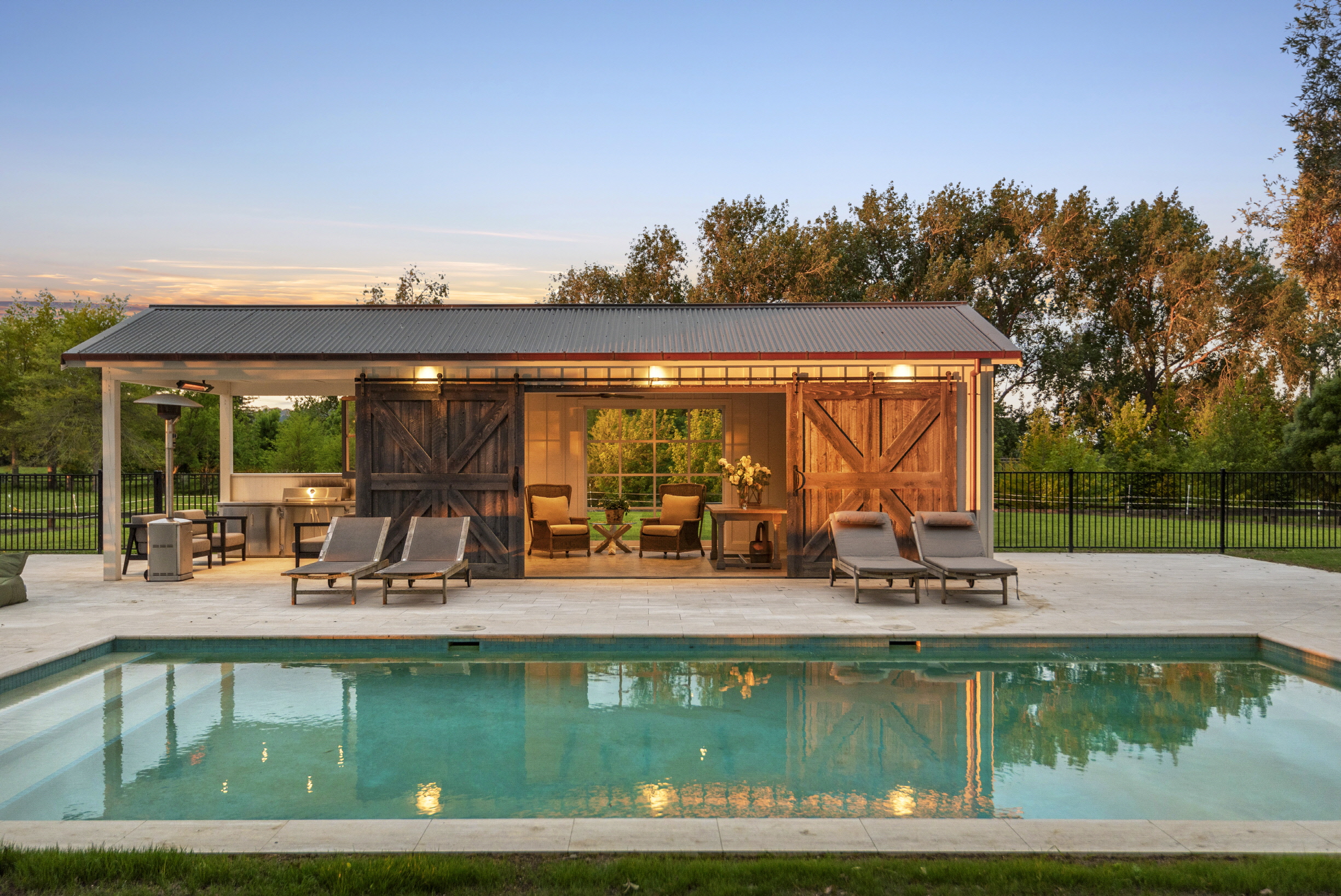Beyond the home, the grounds unfold as a true retreat. A pool, spa, and pool house anchor the outdoor living, with expansive areas designed for gathering, entertaining, or simply stepping away from the pace of the everyday.