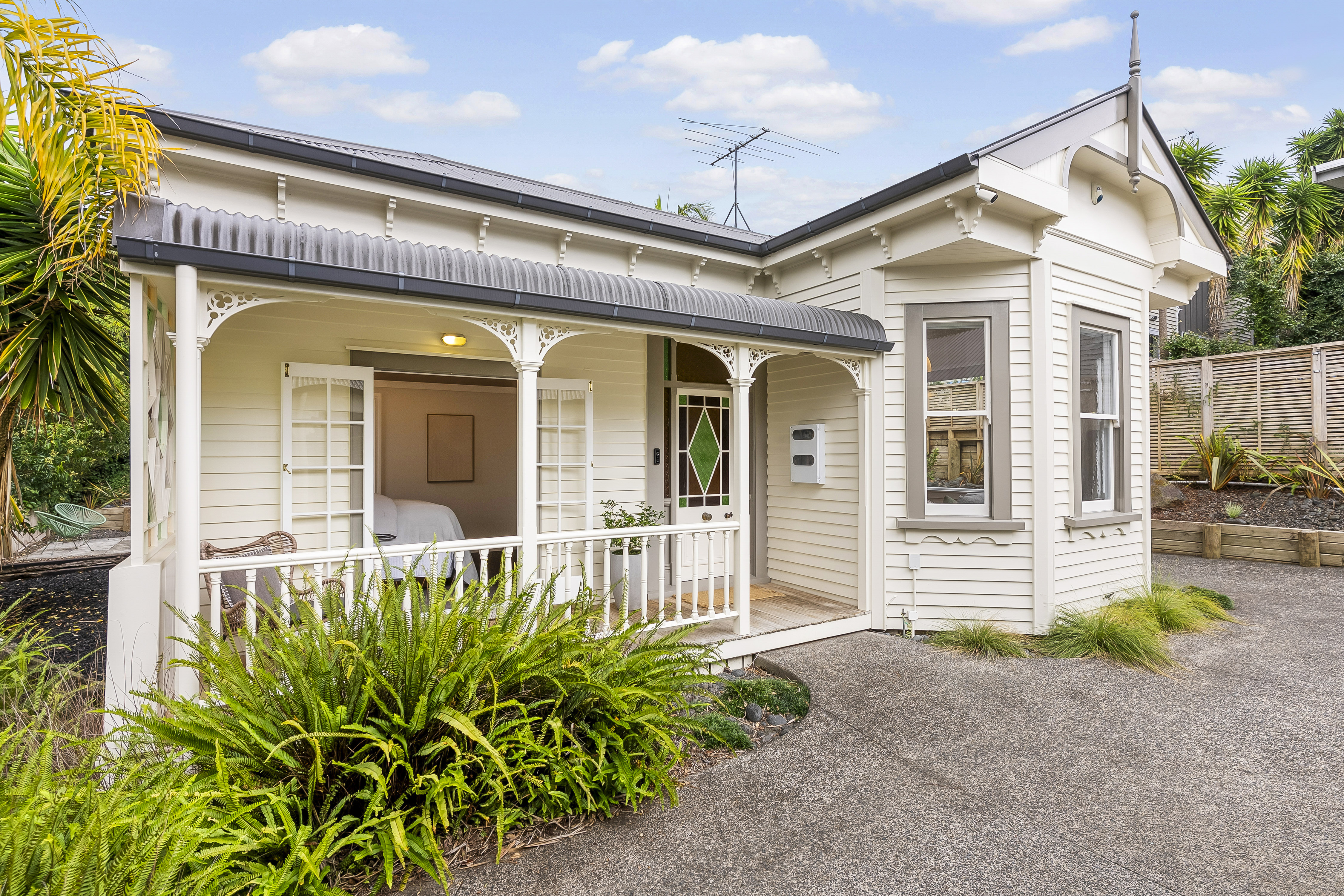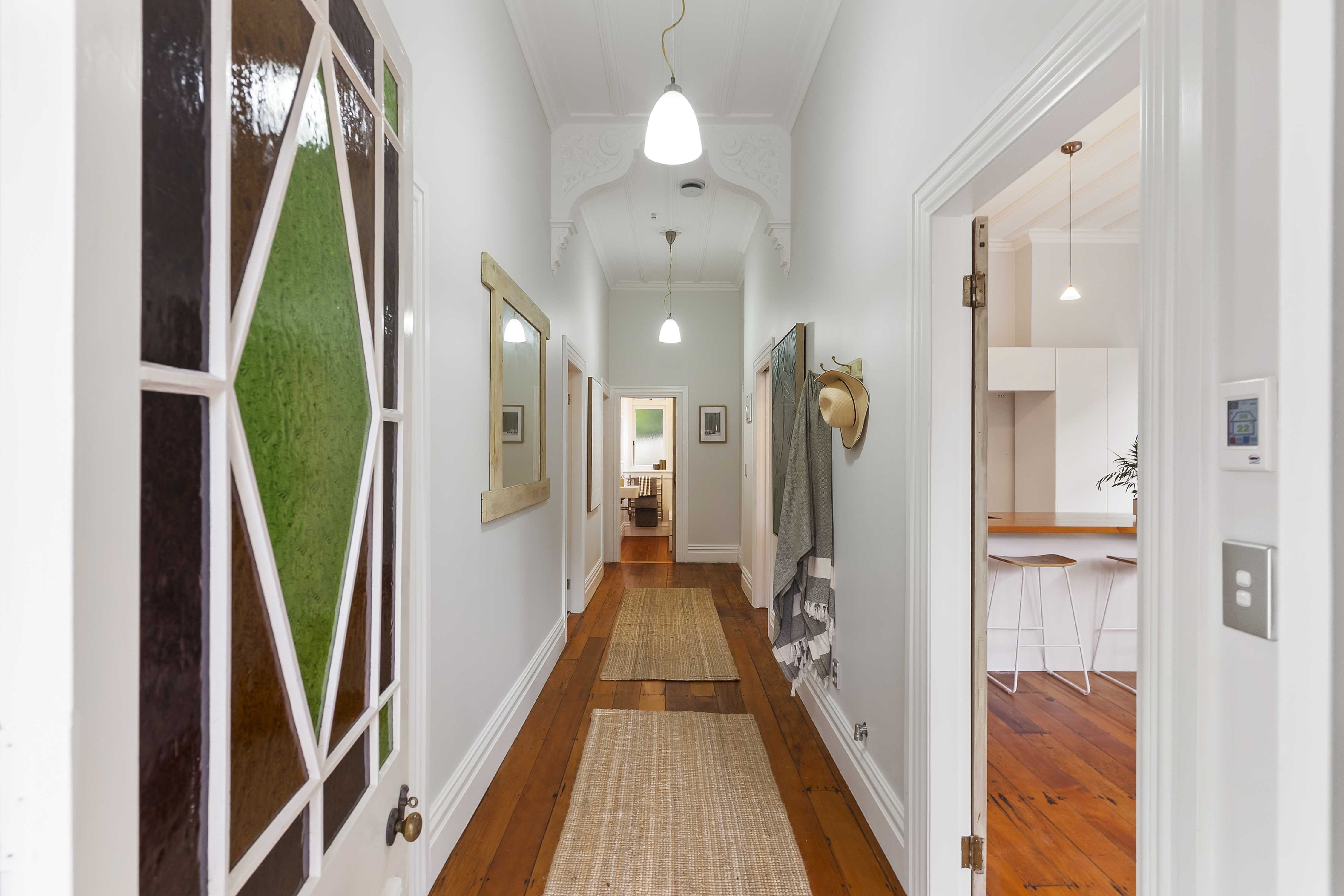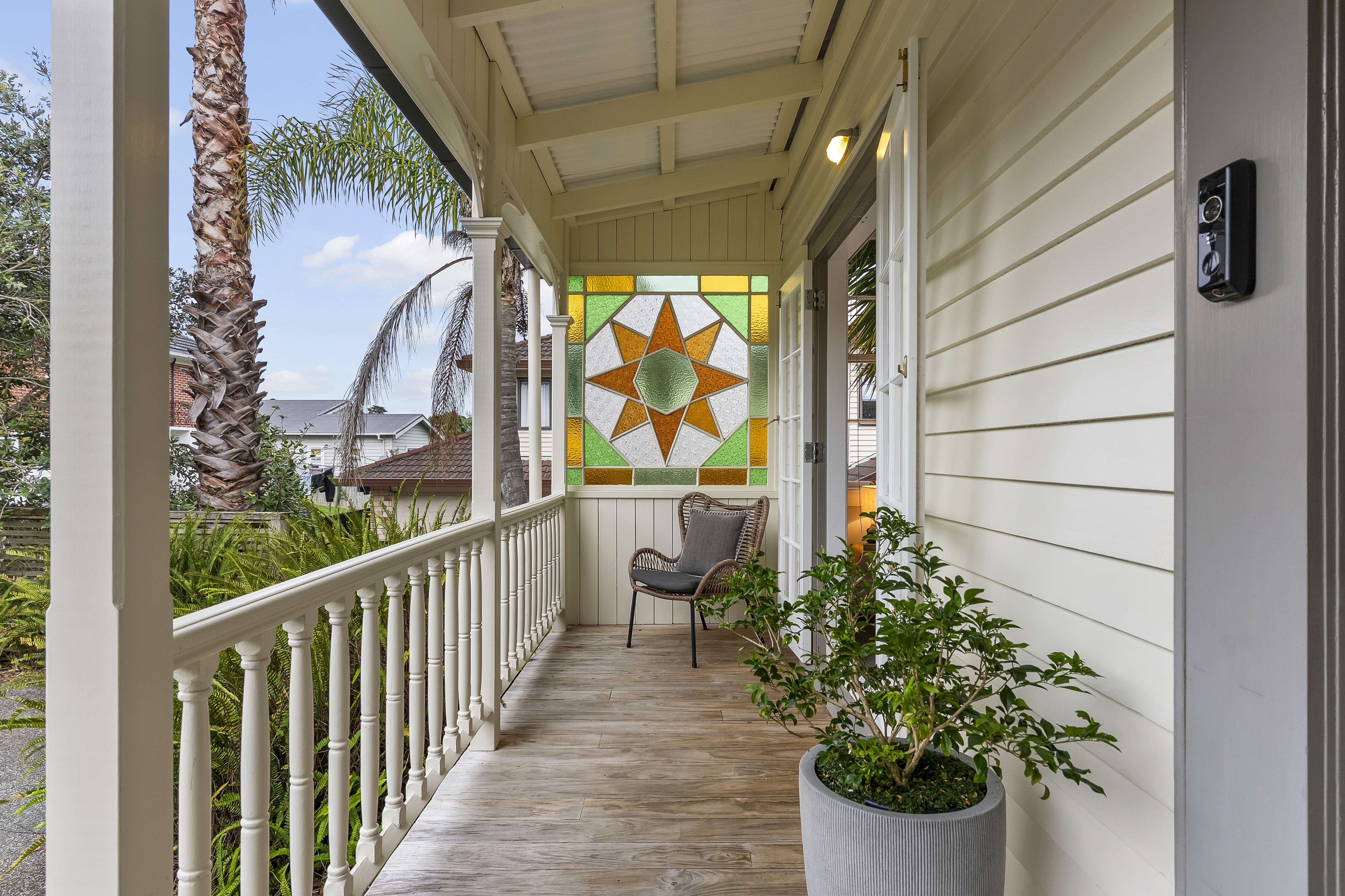 The traditional façade, complete with its charming veranda, ornate detailing, and elegant leadlight windows, sets the tone for what lies within.