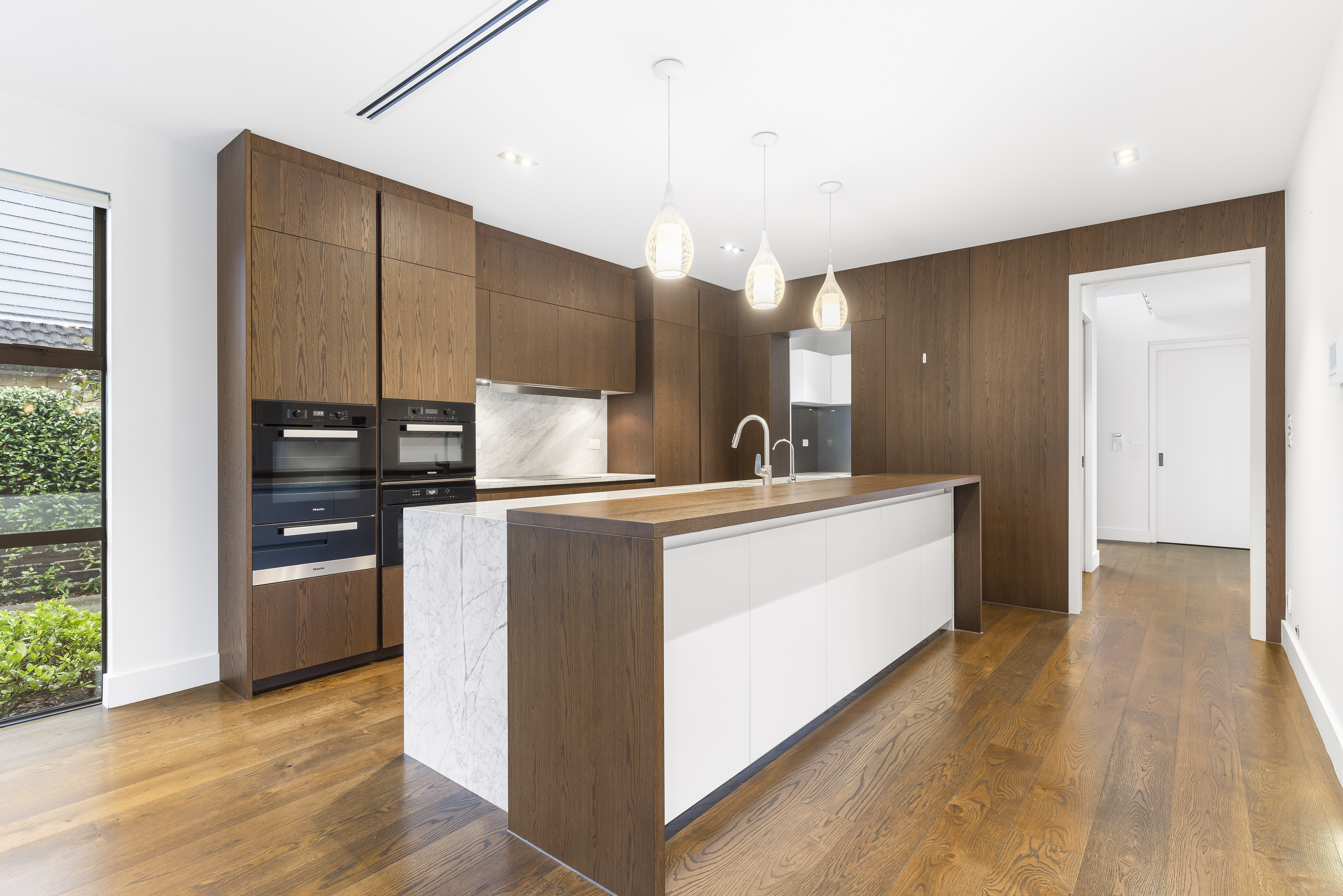 Exquisite and executive - this property will fulfil all of your high-end rental desires. The architecturally designed home boasts five bedrooms and three bathrooms, two of which are ensuites to the Master and another bedroom. The Master bedroom further offers an elegant walk-in wardrobe to meet all your storage needs with sophistication. The sun-soaked, open plan kitchen, living and dining areas makes for an entertainer's dream or for the large family to sprawl. The luxurious kitchen features two Miele ovens with warming drawers, extensive storage space amongst the cupboards and drawers and further boasts a butler's pantry - the perfect feature to keep the mess hidden when entertaining friends or family. The large ranch sliders provide a seamless indoor-outdoor flow into the well-manicured private garden; another beautifully designed area to entertain or to just relax and enjoy.