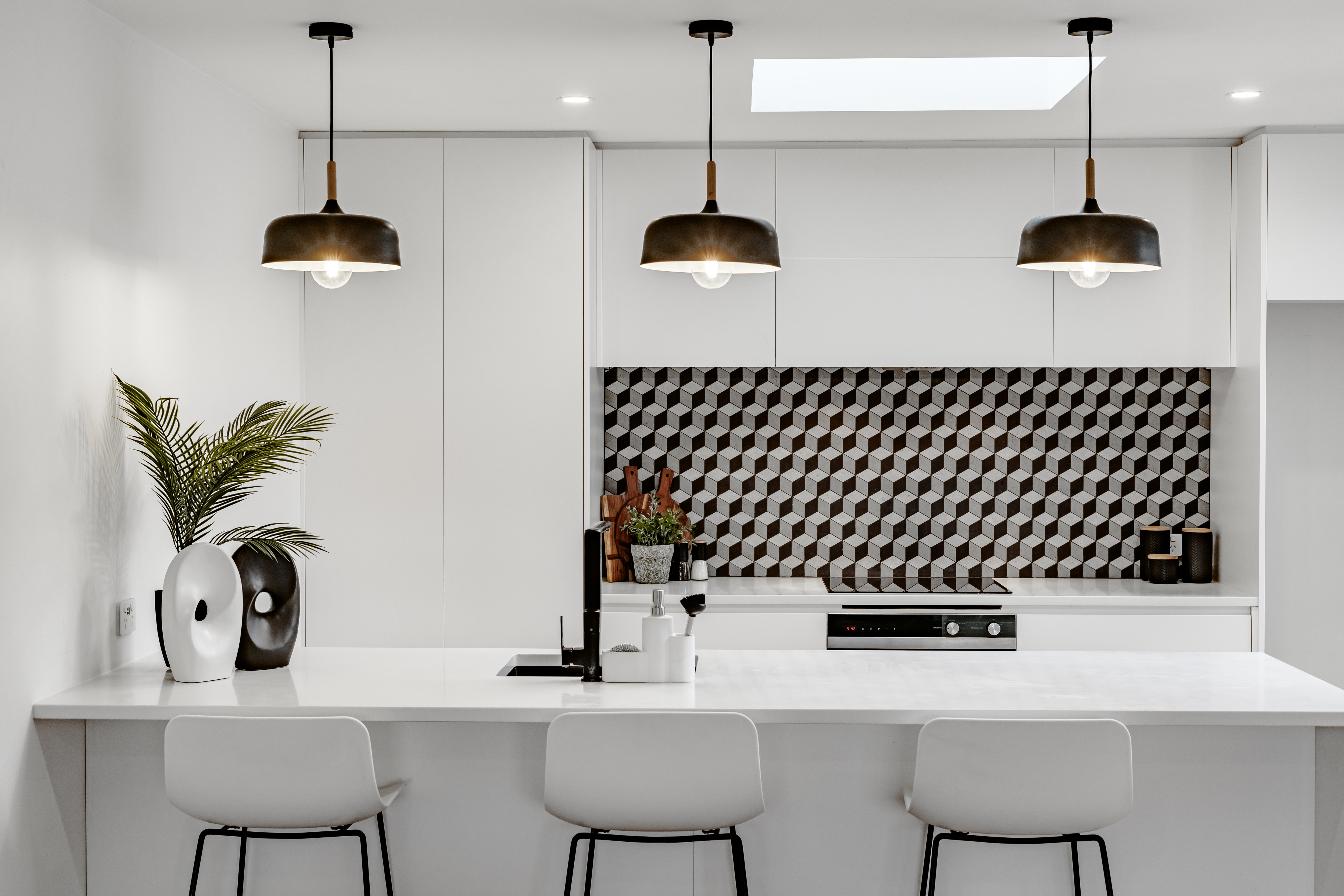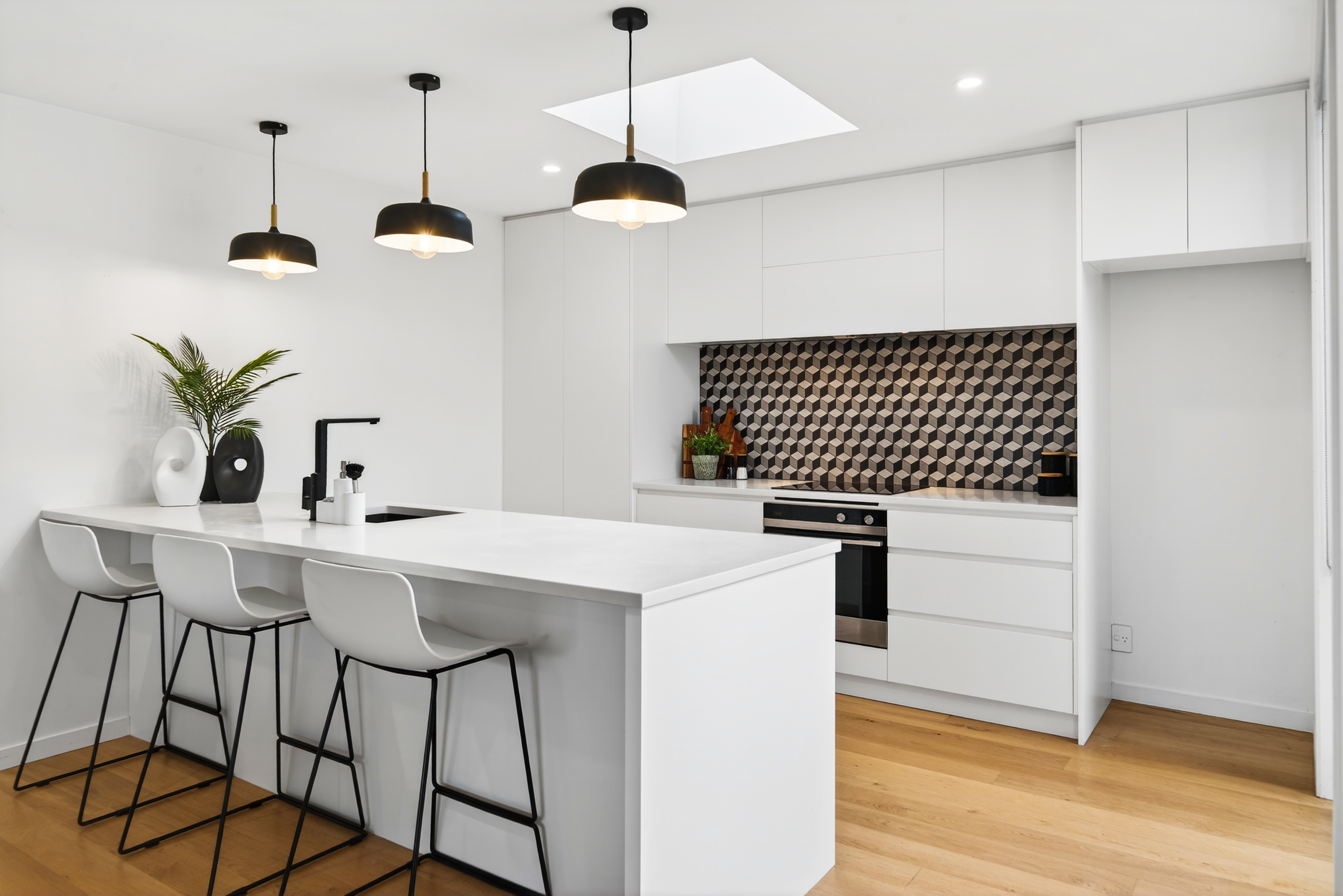 Clean lines, modern finishes, and abundant natural light create a calm, stylish atmosphere, while the elevated position enhances privacy and outlook. A double internal-access garage plus rare off-street parking adds convenience rarely found in this location.
