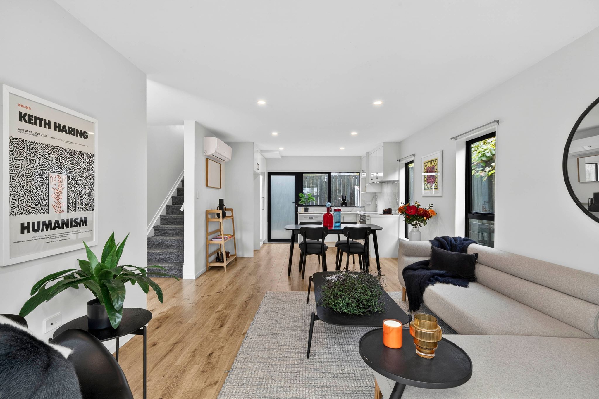 Built in 2021, the home offers a clean, modern aesthetic with a layout designed for easy, everyday living. The open-plan living area connects seamlessly to the outdoor spaces, creating multiple options for entertaining or unwinding, while the additional light from its end position enhances the feeling of scale throughout.