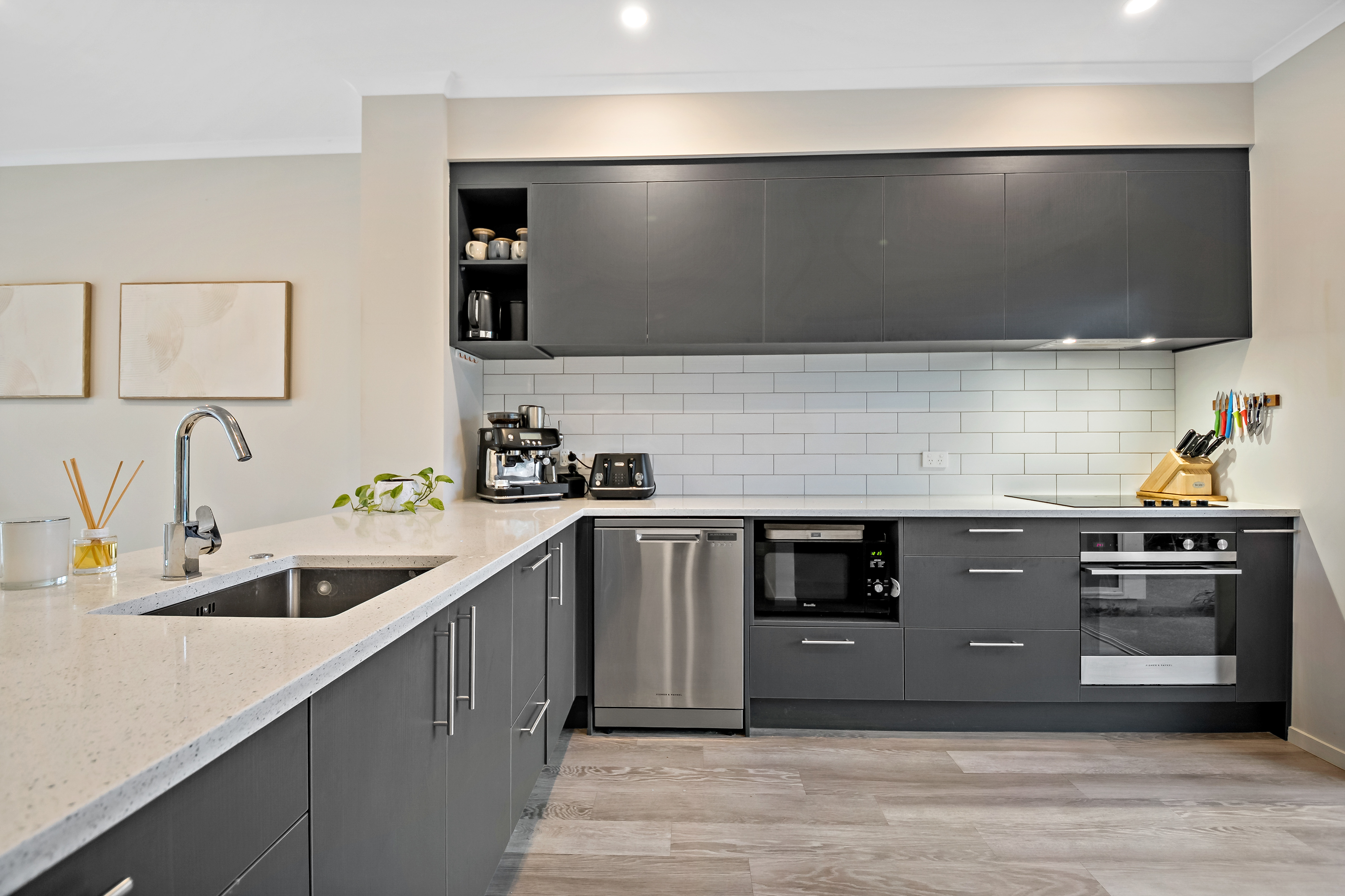 • Living zones are generous without being wasteful, opening cleanly to the outdoors for everyday play, relaxed entertaining or quiet end-of-day downtime. The kitchen is crisp, modern and unfussy, making everything comfortable and effective.
