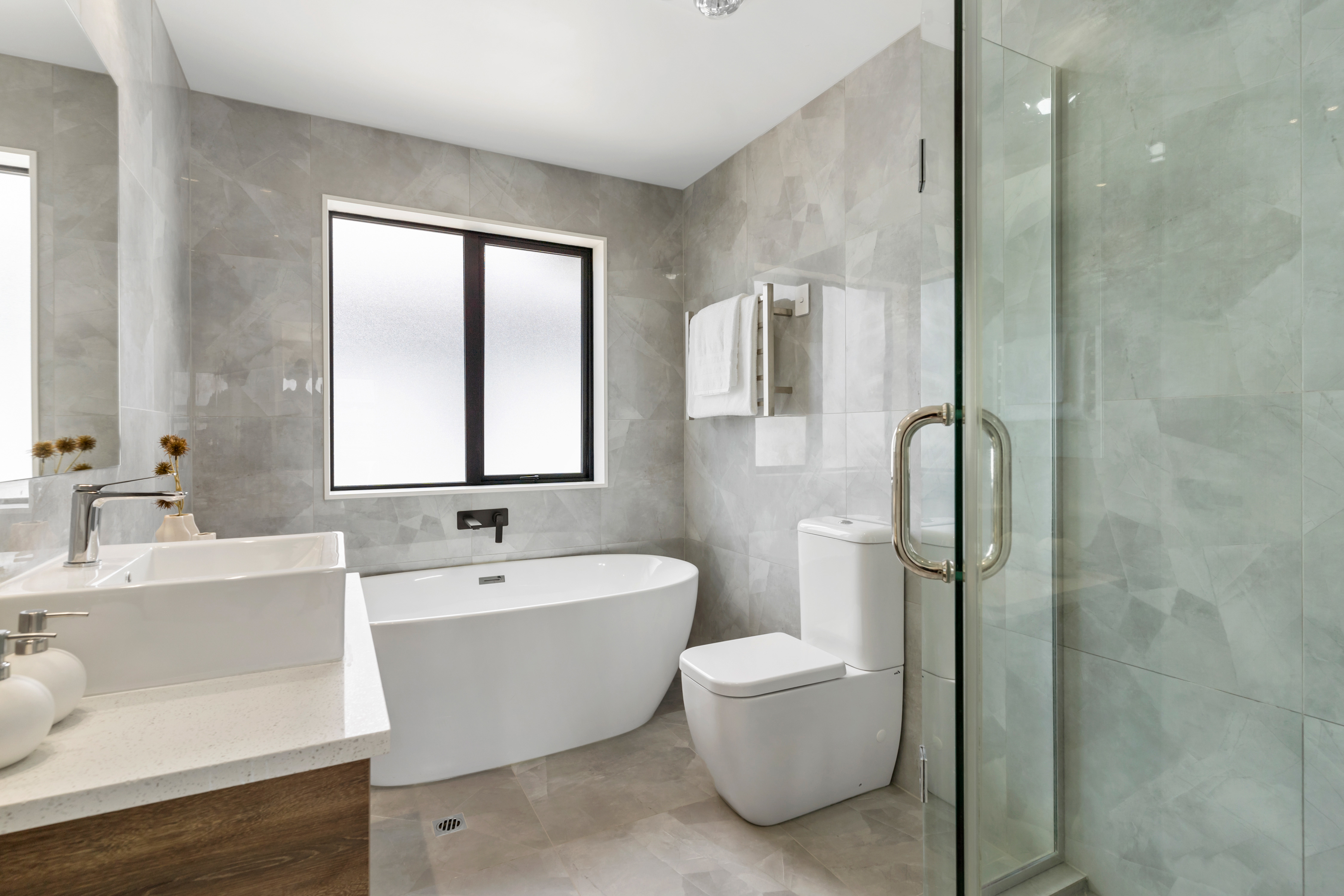 The kitchen is sleek with quality appliances, designed to perform seamlessly for both everyday living and entertaining. Five generously proportioned, light filled bedrooms include three master style suites, offering flexibility for families, professionals, guests, or multi-generational living.