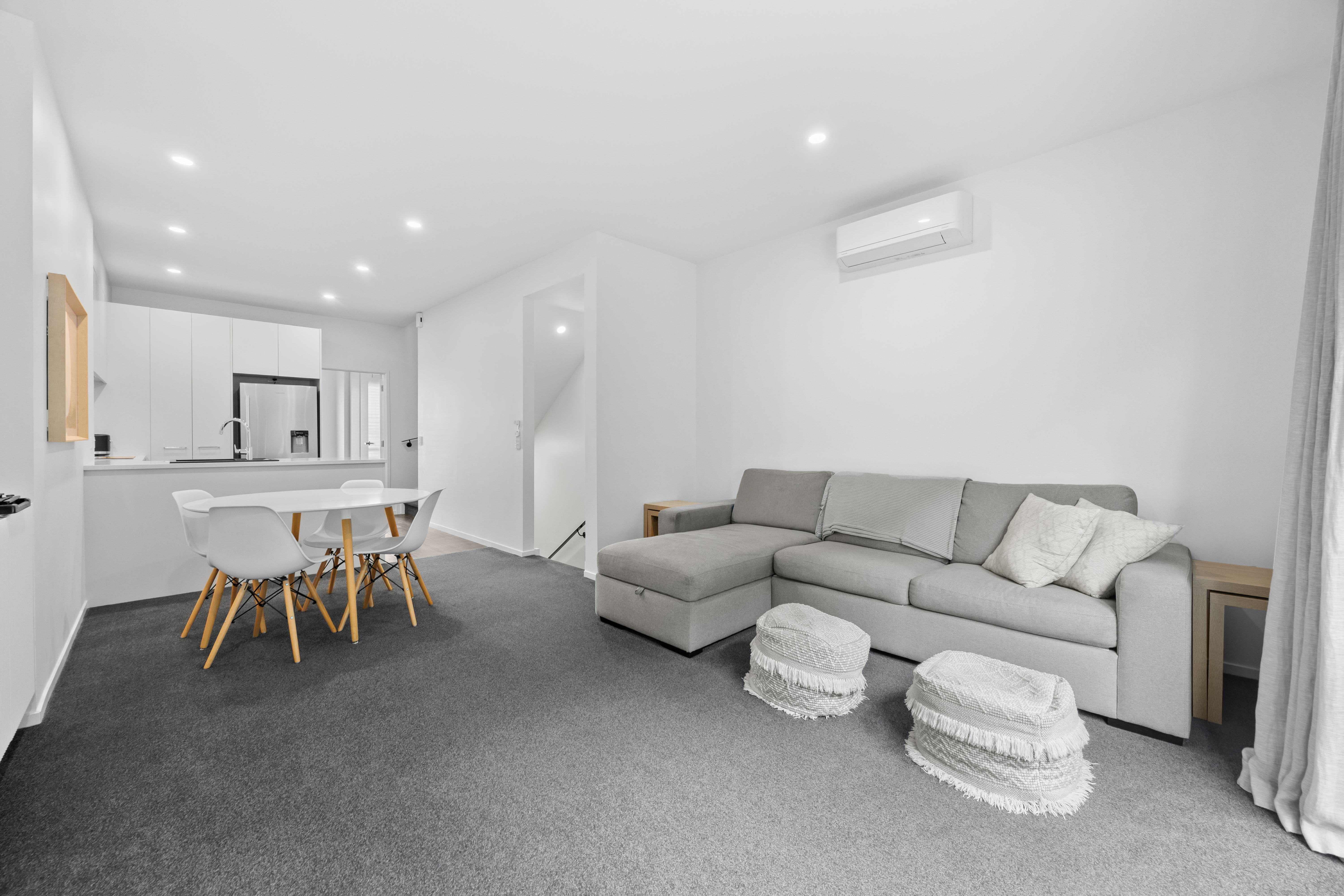 Set privately within a quiet mews environment, this fee simple property offers a large and highly functional floor plan with clear separation between living and accommodation. All bedrooms are spacious doubles and deliberately positioned to maintain privacy from one another, while delivering a clean and practical open plan living area, supporting day to day use without compromise. The downstairs level is anchored by a large tandem double garage with an integrated laundry area, providing genuine utility rather than an afterthought.