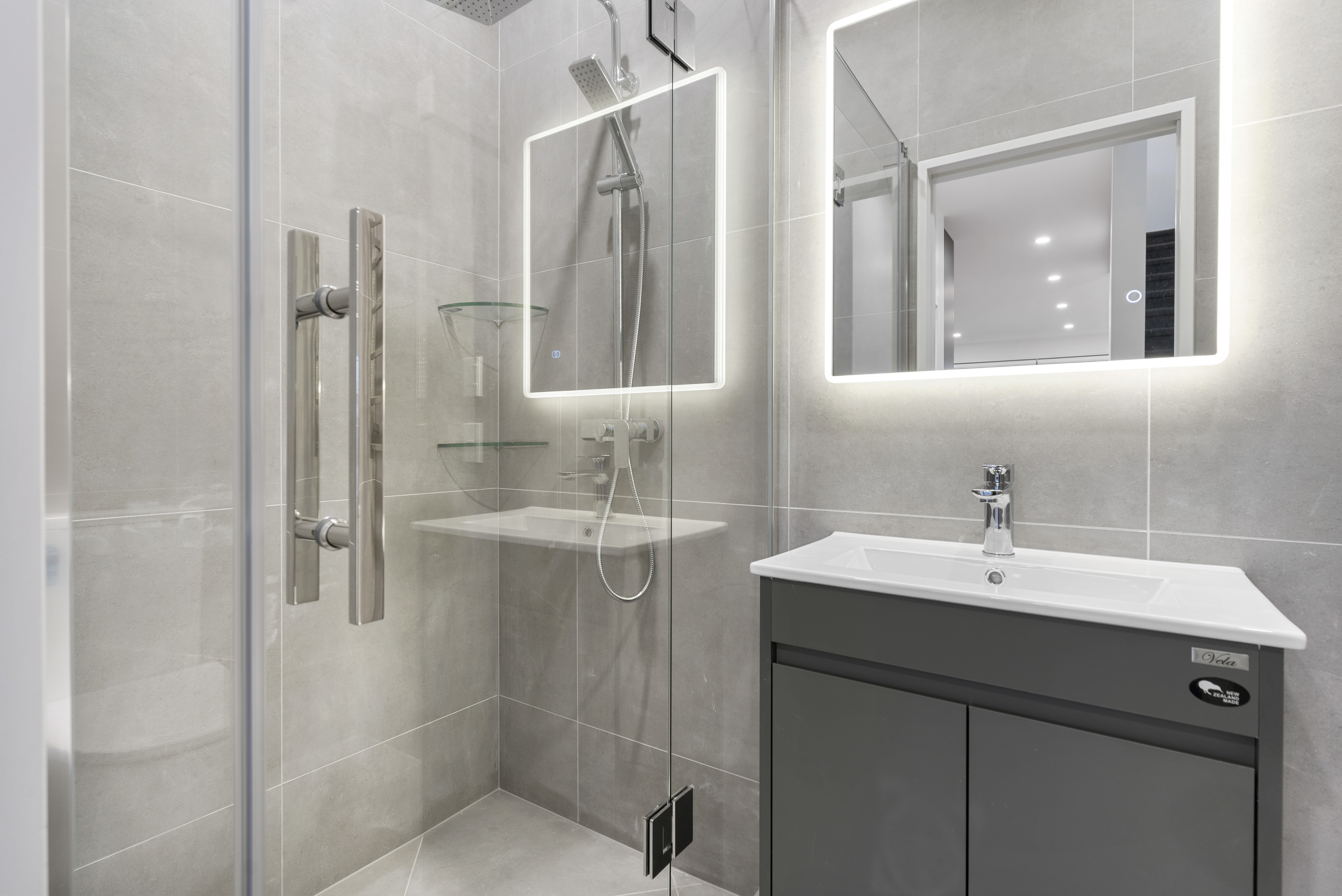 Ground Floor: Double bedroom with ensuite opening to the rear deck / garden area. Tandem garage + large laundry area in hall.