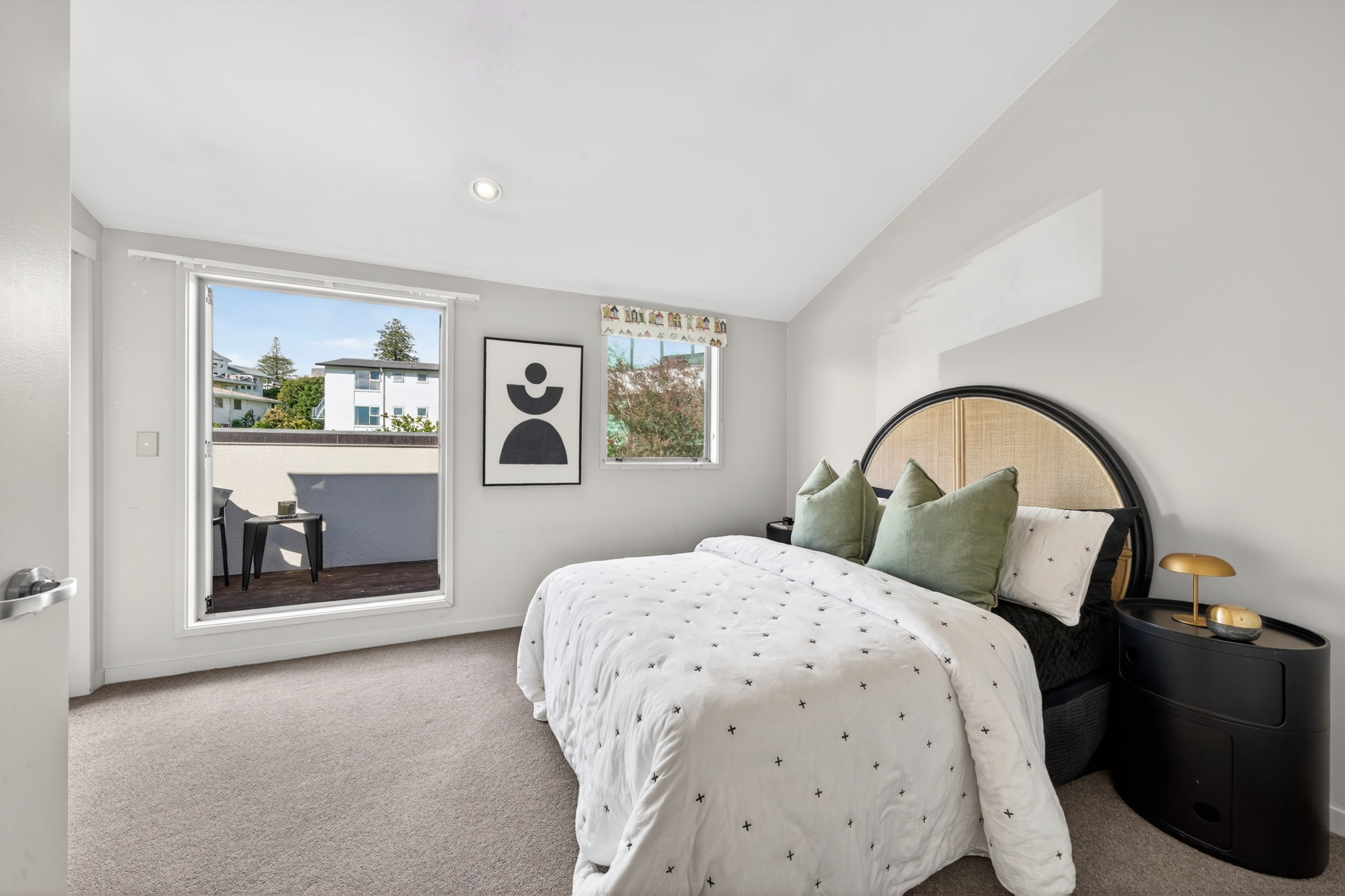 Set across three levels, the layout is highly functional for modern living. The main level features open plan living, dining and kitchen, complemented by a versatile second living or study space, along with a north-facing balcony that flows directly from the living area. High ceilings enhance the sense of light and openness throughout.