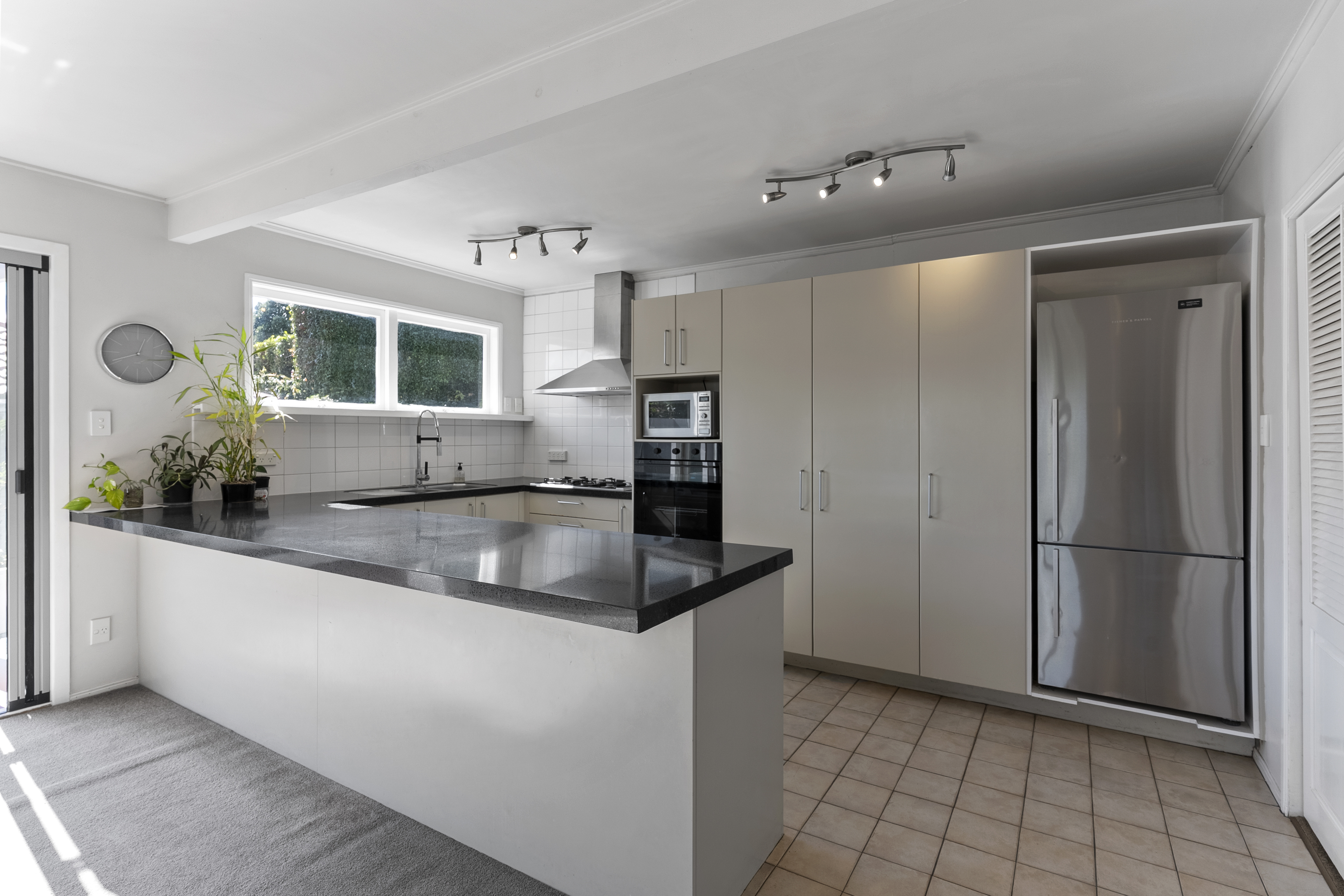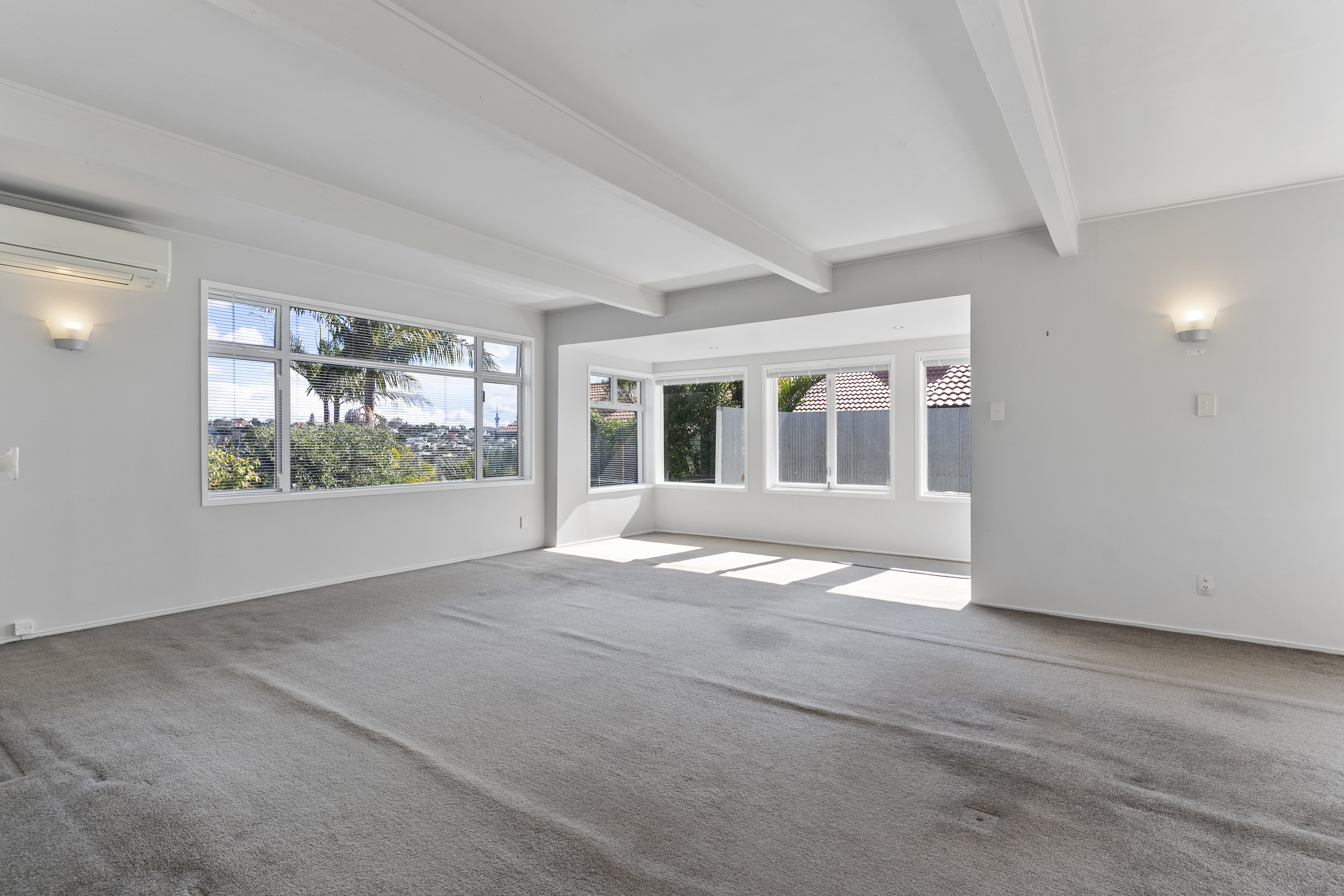 The home is filled with natural light and captures expansive views across Remuera's northern slopes to the city skyline. A generous living area flows seamlessly to a sun soaked, north facing patio and garden with a private, established space complete with fruit trees and garden beds, perfect for both entertaining and quiet relaxation.