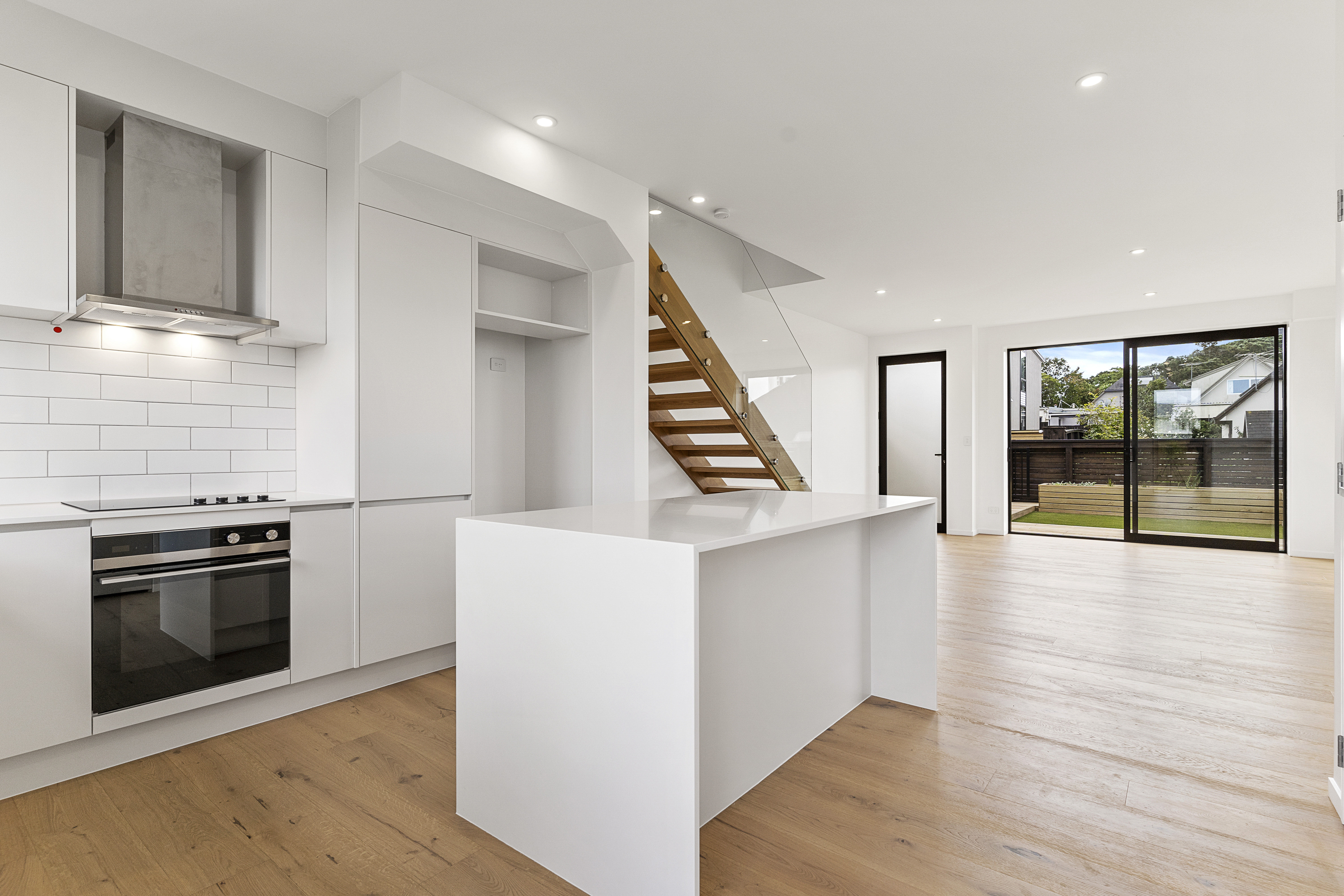 Superbly positioned for all day sun this two level townhouse features spacious open plan living on the ground floor opening to a private garden area at both the front and rear. Modern brand new kitchen with high spec appliances & island bench space. Accommodation is all upstairs - Three well proportioned bedrooms, the master featuring an ensuite and walk in robe. The unit features double glazing and a heat pump for all season comfort. There is 1 off-street car park and street parking on surrounding streets.