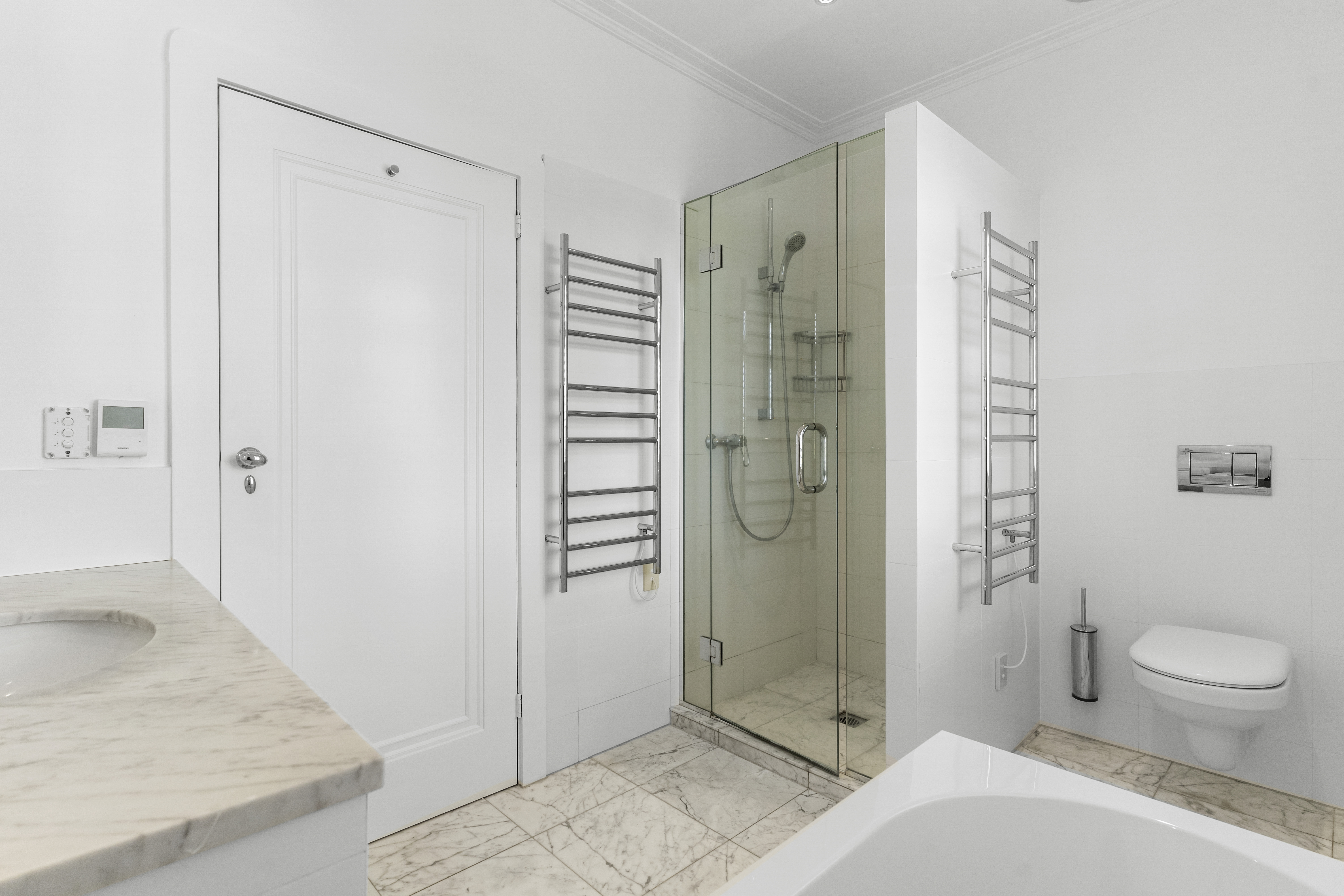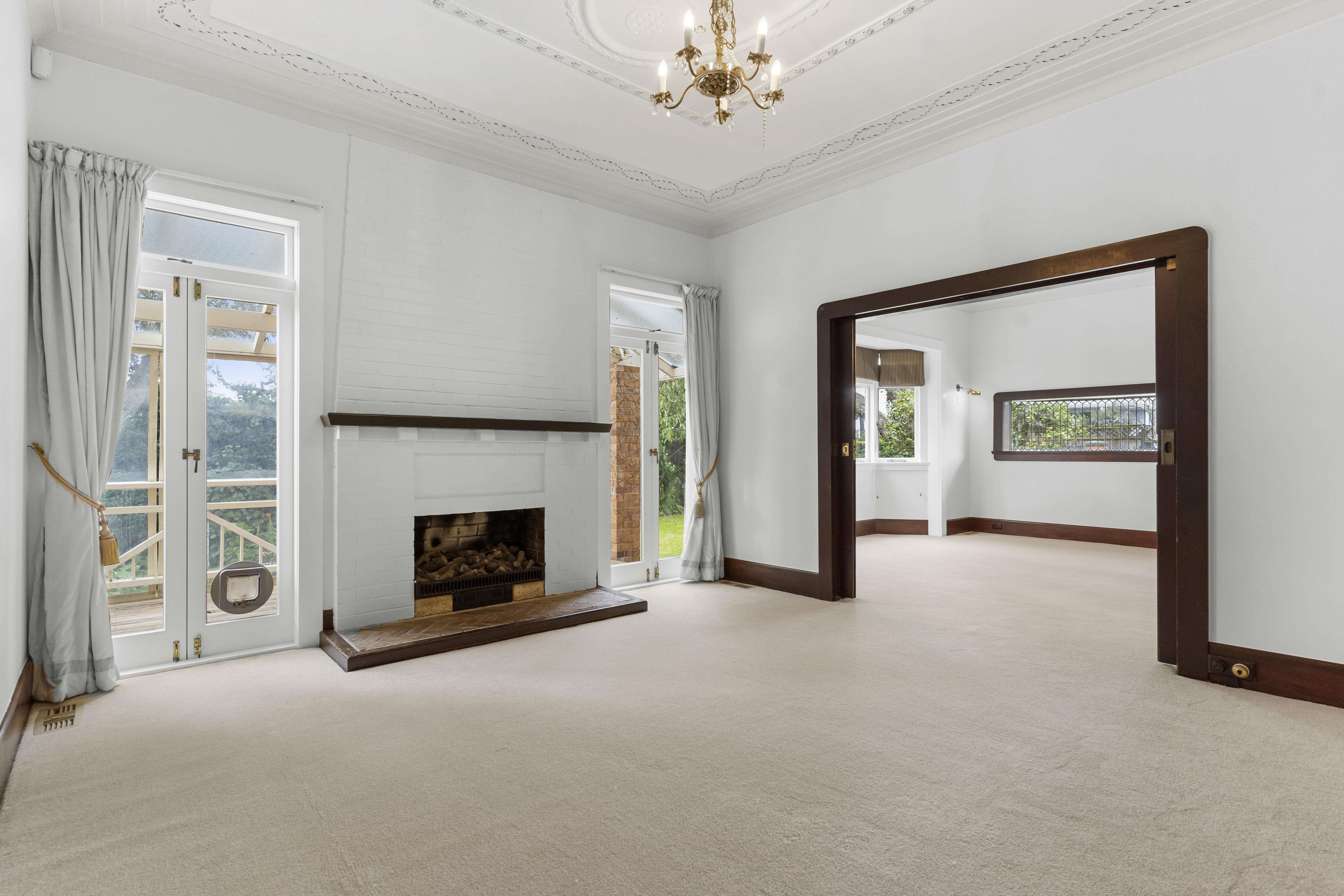 A grand foyer welcomes you inside, where classic character features and high ceilings set the tone. Two adjoining living rooms create an expansive living space rarely found today, with a stunning bay window in the front lounge filling the room with natural light. These large living areas provide excellent flexibility for entertaining, relaxing, or accommodating busy family life.