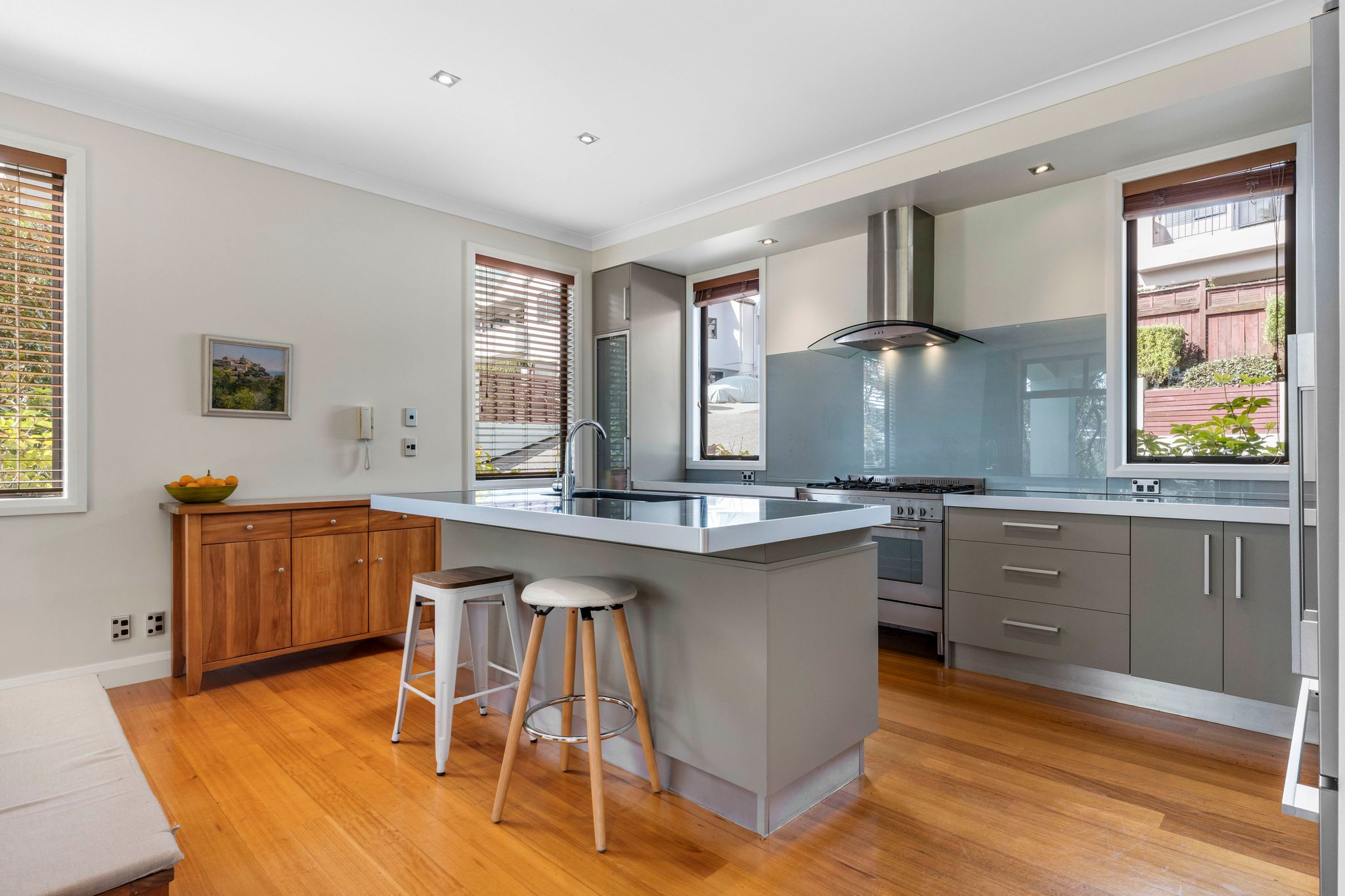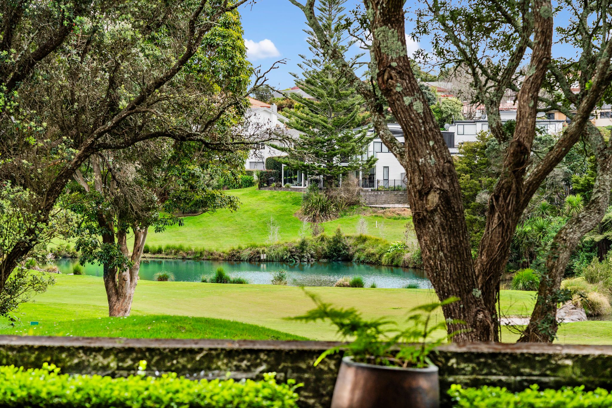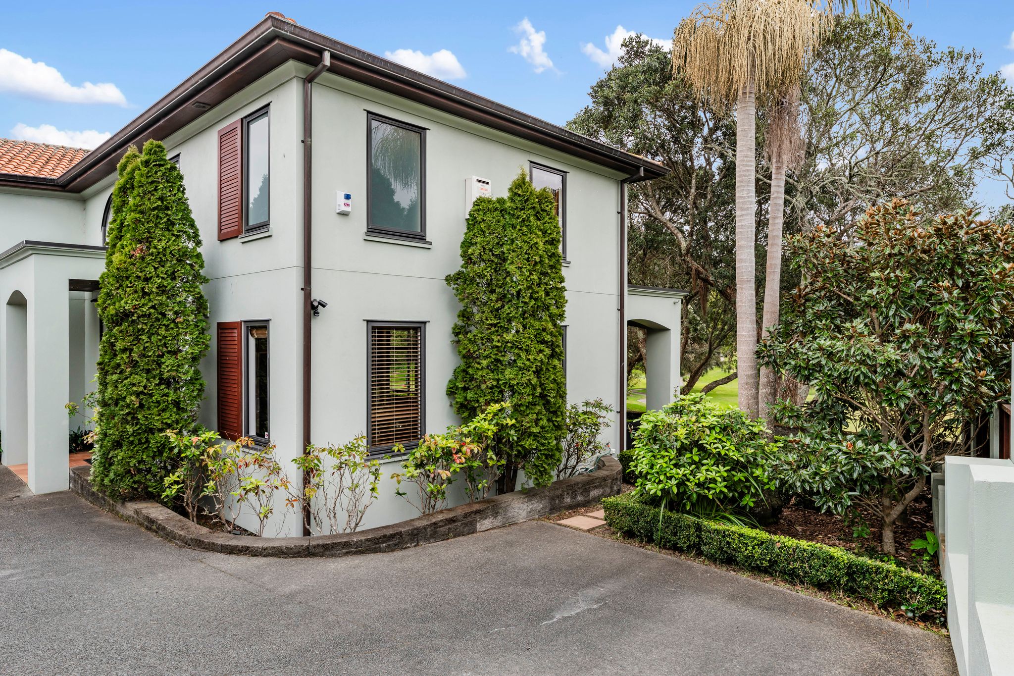 Outside, the low-maintenance section is landscaped and perfect for entertaining, with sunny decking and patio areas that overlook the park-like surroundings of the Remuera Golf course. The partially fenced yard provides a safe space for kids or pets to play.