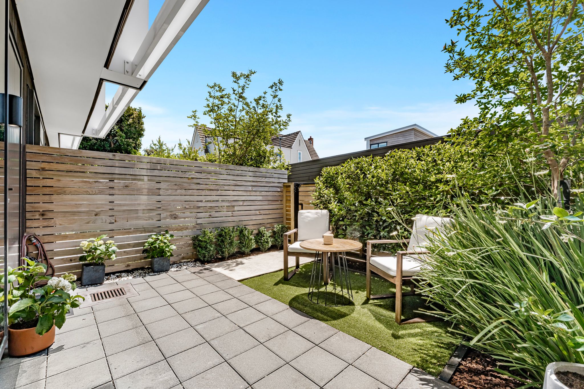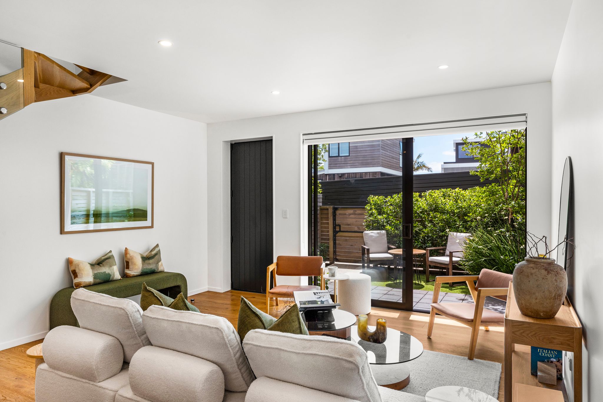 The main level is anchored by open-plan living and dining that connects to a private courtyard, creating an easy setting for entertaining or a quiet morning coffee. The kitchen supports modern living with a practical layout and considered finishes.