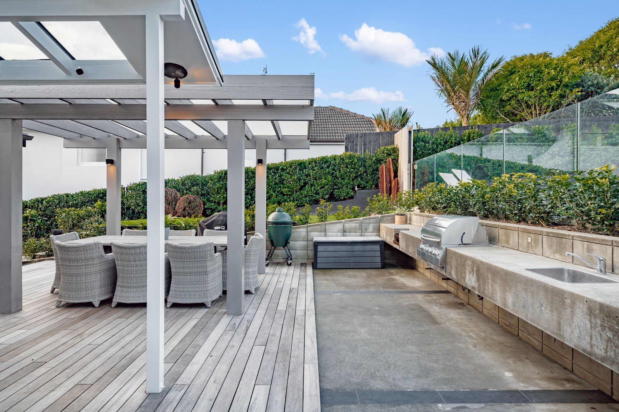 At the heart of the home, a striking kitchen sets the scene for entertaining - bold, elegant and highly functional, complete with an expansive scullery and seamless connection to outdoor living. Step outside and discover your own private resort: a sun-drenched, heated saltwater pool, pool house with powder room and outdoor shower, and beautifully landscaped gardens with irrigation. Whether it's weekend pool parties, family barbecues or quiet evenings under the stars, this space delivers lifestyle in spades.