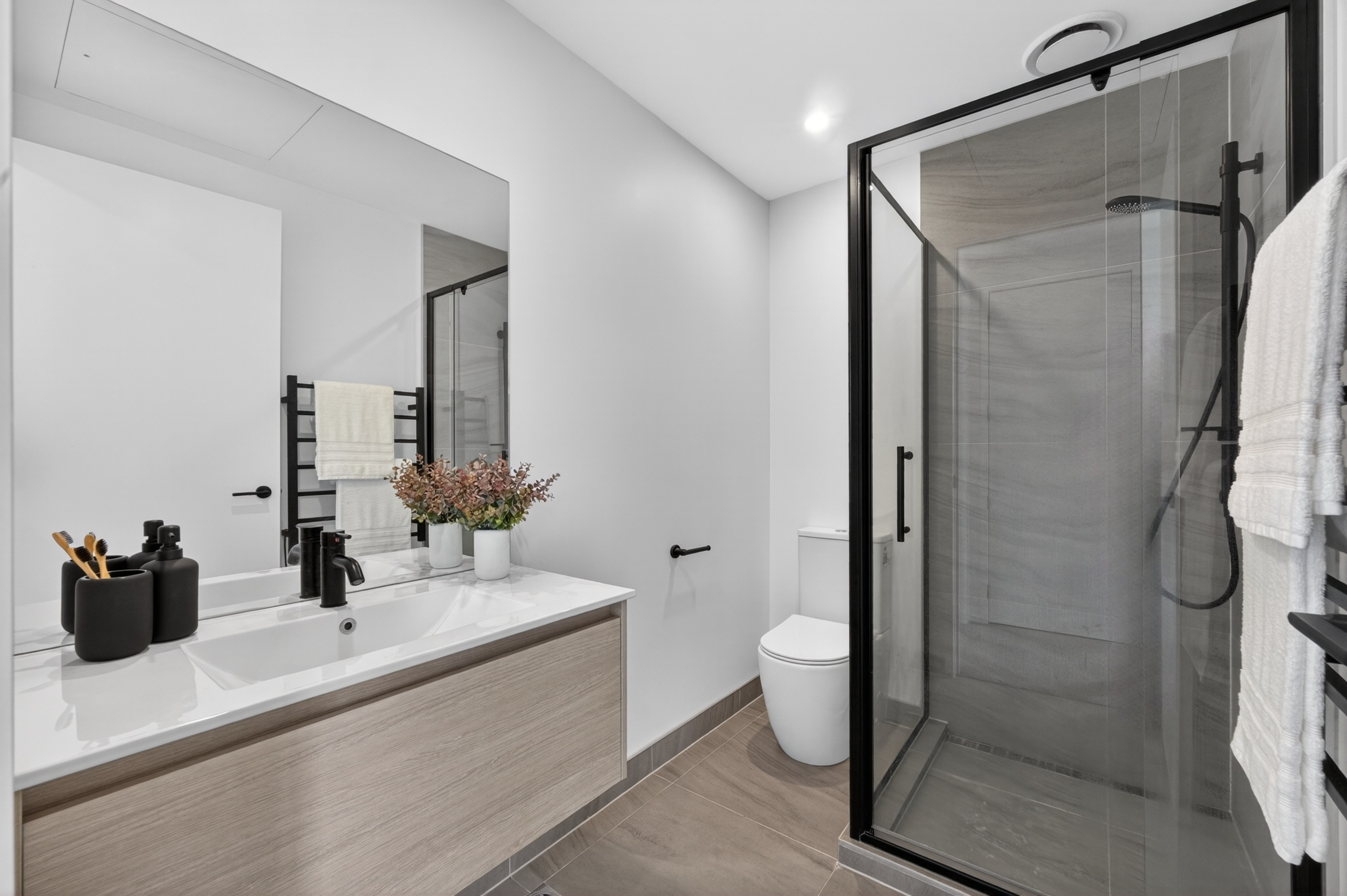 The clever three level layout is specifically designed to cater to modern living arrangements. On the ground floor, you will find a spacious bedroom featuring its own private ensuite and direct access to a charming courtyard. This setup is a dream for those looking to take on a flatmate to assist with the mortgage or for hosting guests, as it offers a level of privacy and separation rarely found in urban homes.